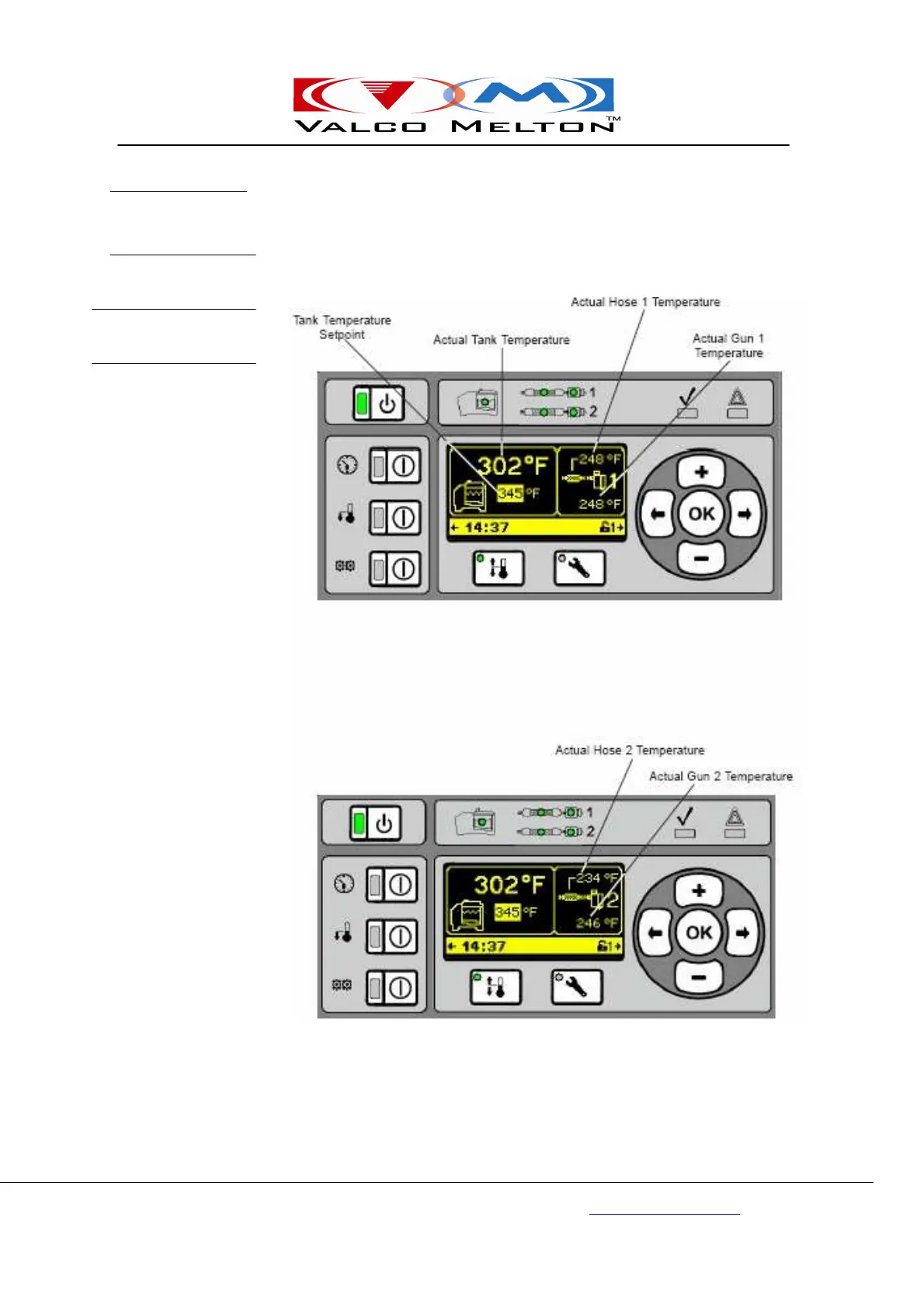 display screen alternately displays the Hose 1/Gun 1 temperatures and the