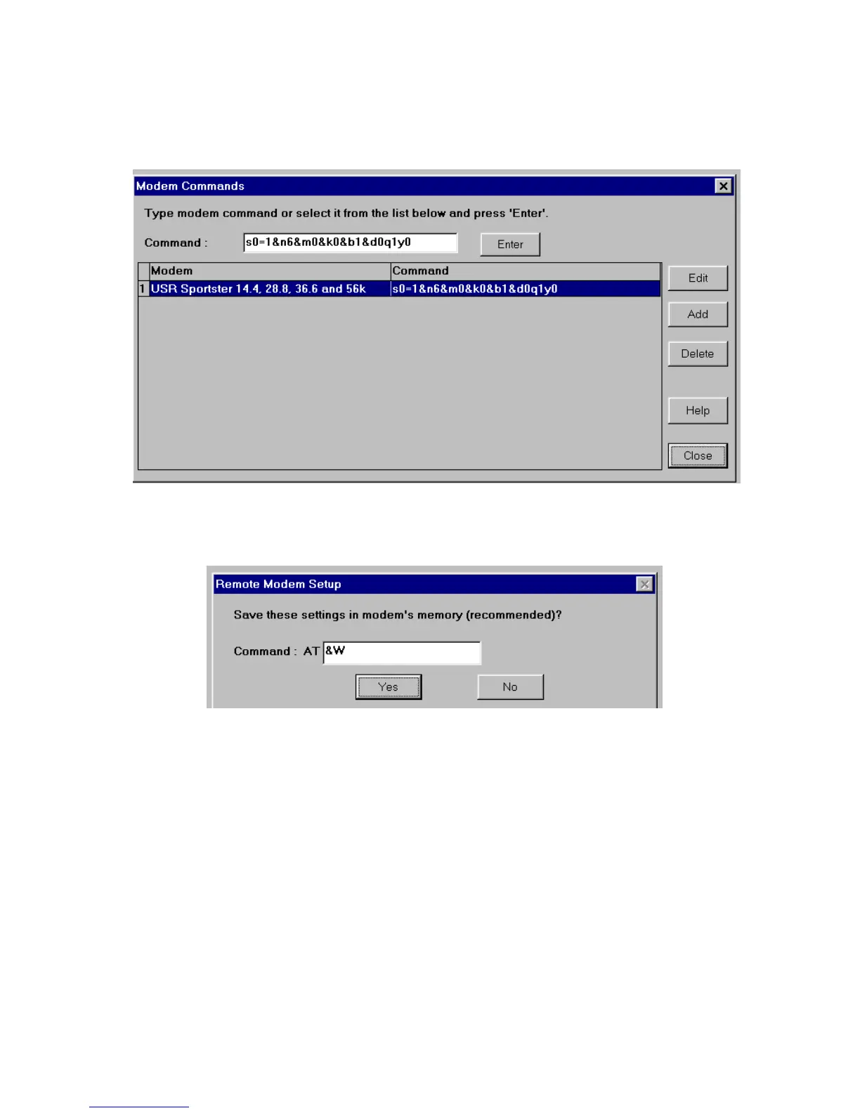 6. The default modem commands for the US Robotics Sportster appear below. Click on Enter to send
