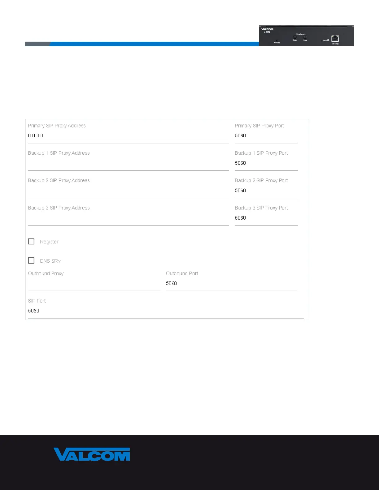 is the port on which the V-9972 will listen for inbound are the IP port numbers to be used for SIP communications.