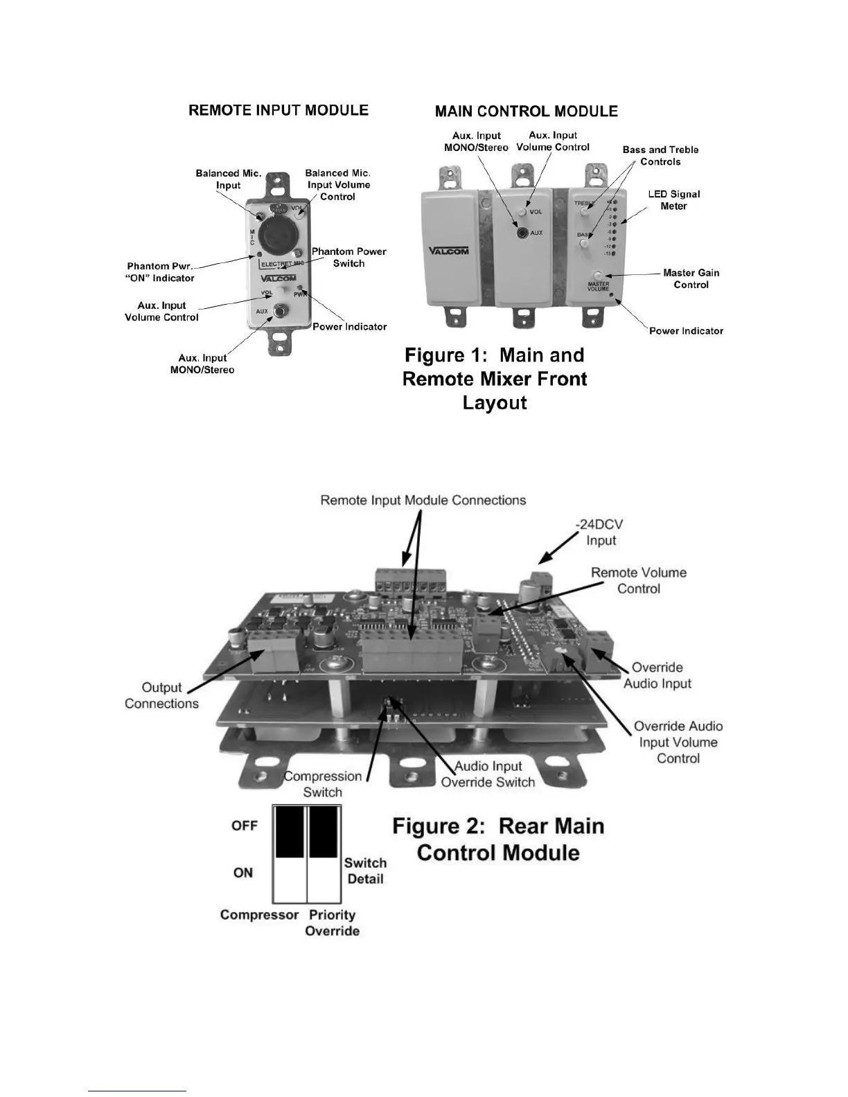 Valcom V-9983 - Module Connections and Wiring; Front Panel Layouts; Rear Panel Connections