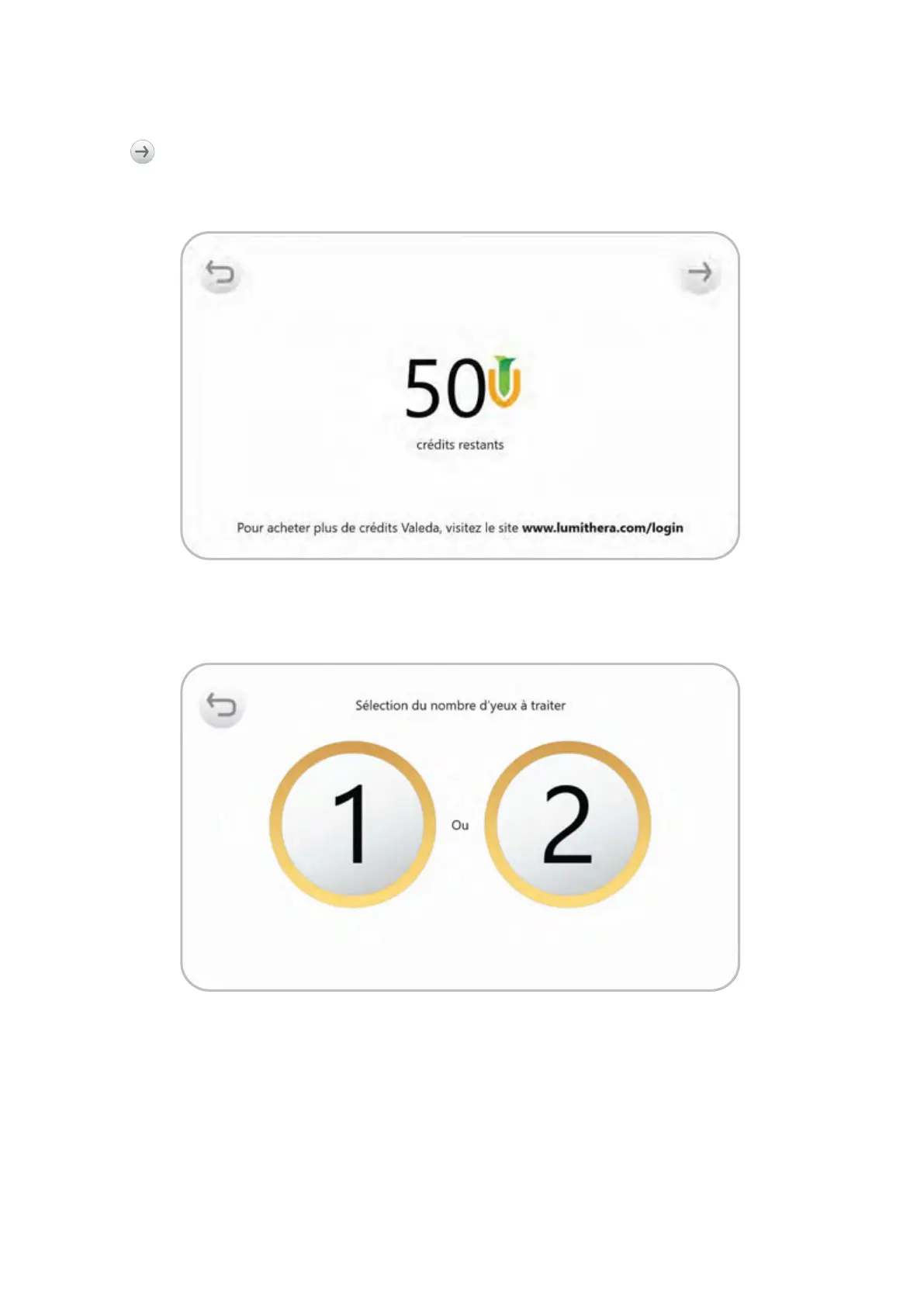 L’écran suivant montre le nombre de crédits de traitement Valeda restants. Appuyer sur le