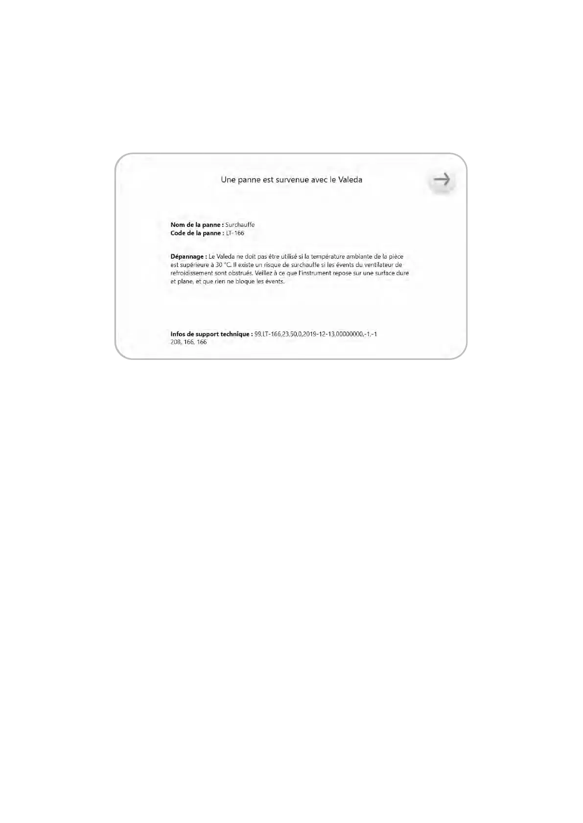 Dans le cas où une panne du système est détectée par le système Valeda, un message de panne