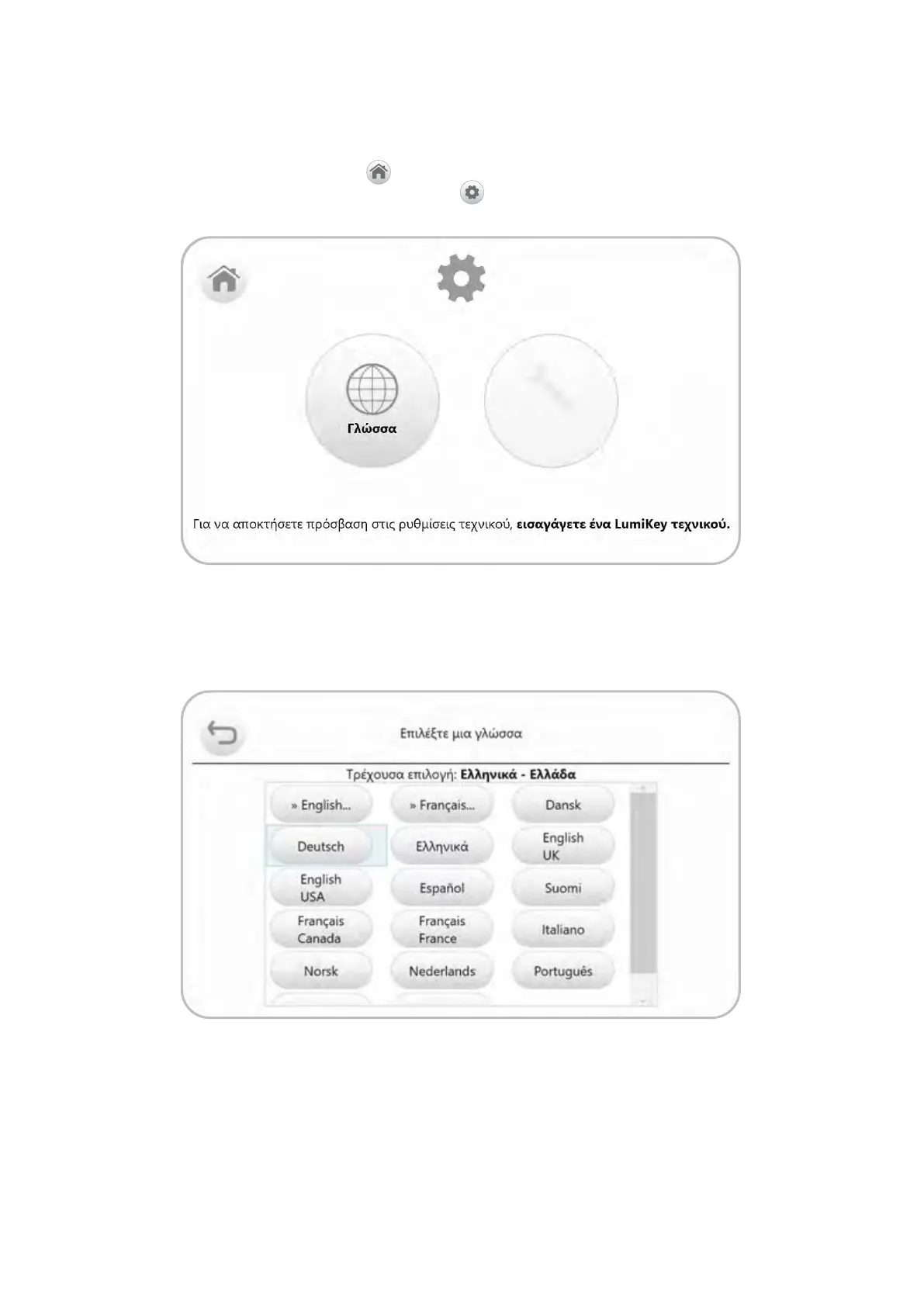 Εάν επιλέξετε το κουμπί «γλώσσας» σας παρέχεται μια λίστα των γλωσσών που είναι διαθέσιμες