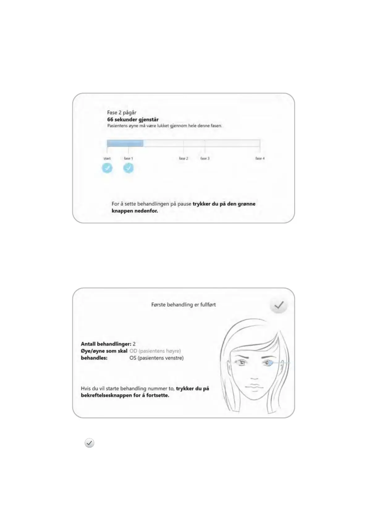 Hvis pasientens andre øye skal behandles, vil systemet vise følgende skjerm etter at de 4