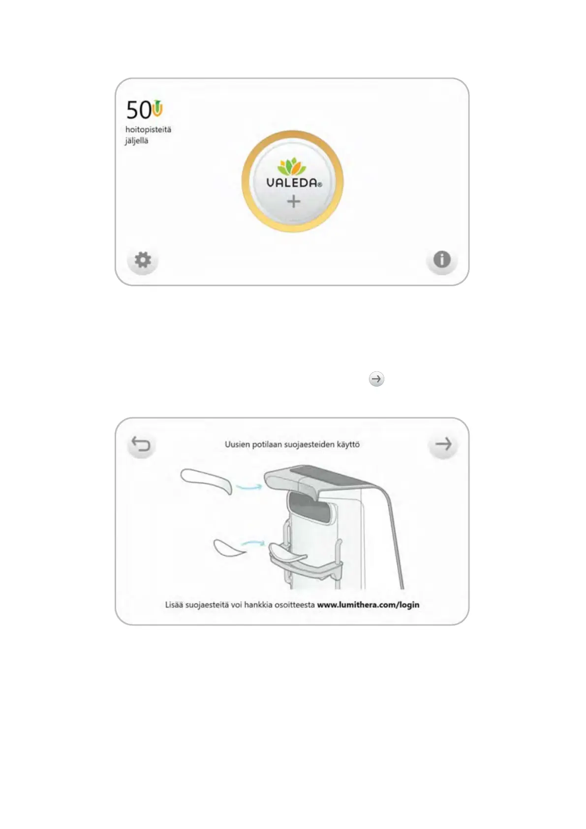 Aseta kertakäyttöiset suojukset leuka- ja otsatukeen ja napauta Jatka-painiketta.