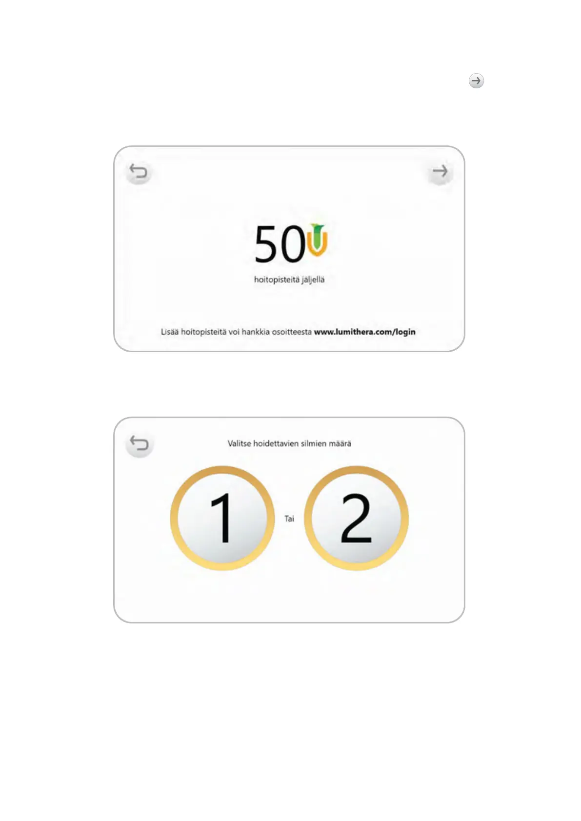 Jos yksi silmä valittiin hoidettavaksi, valitse kosketusnäytöltä, kumpi silmä hoidetaan (kuva 8).