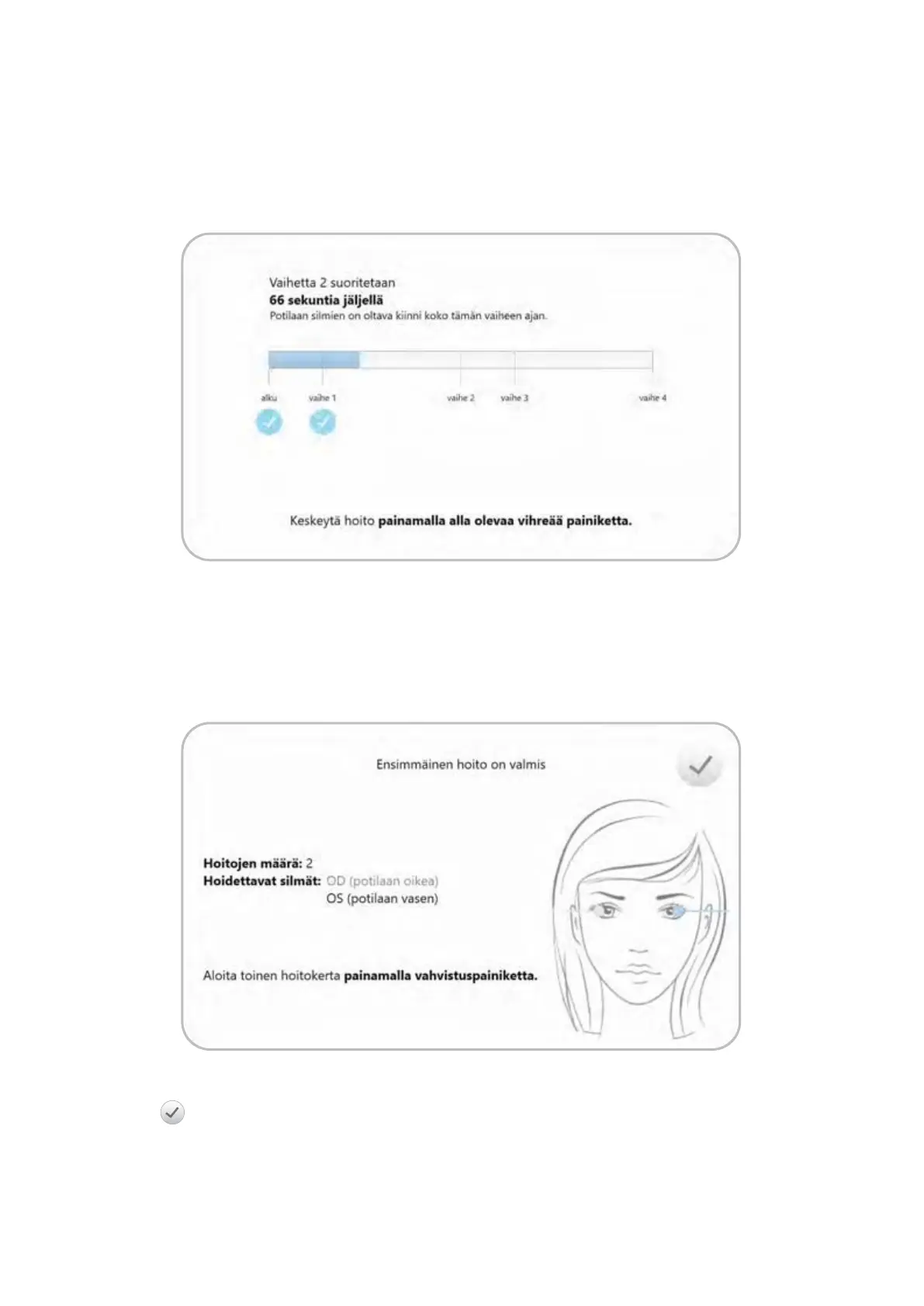 Jos potilaan toinen silmä on hoidettava, järjestelmässä näkyy seuraava ruutu kun ensimmäisen