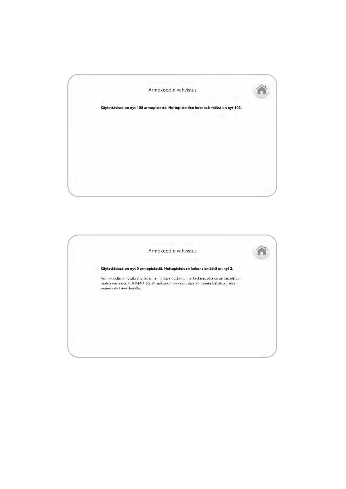 Jos hyvitysjakson koodi hylättiin, näkyviin tulee seuraava ruutu (kuva 23).