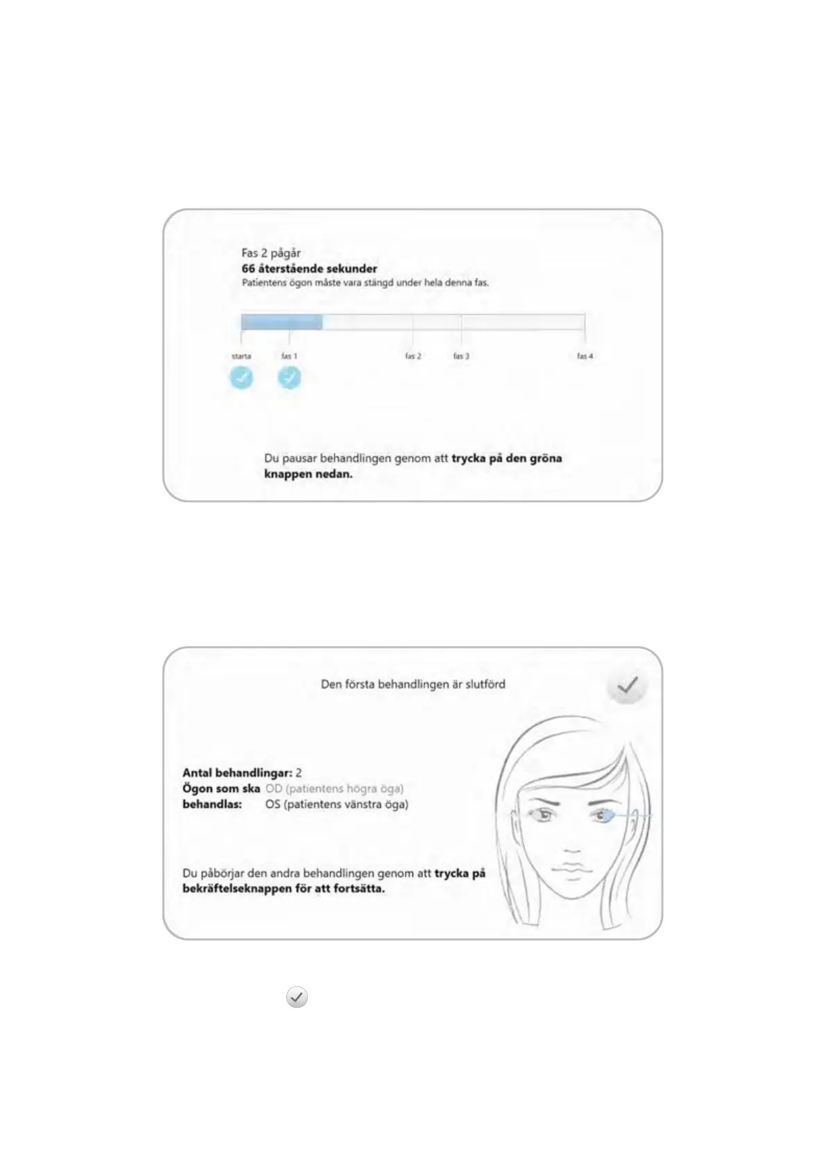 Om patientens andra öga ska behandlas, kommer systemet att visa följande skärm eer att