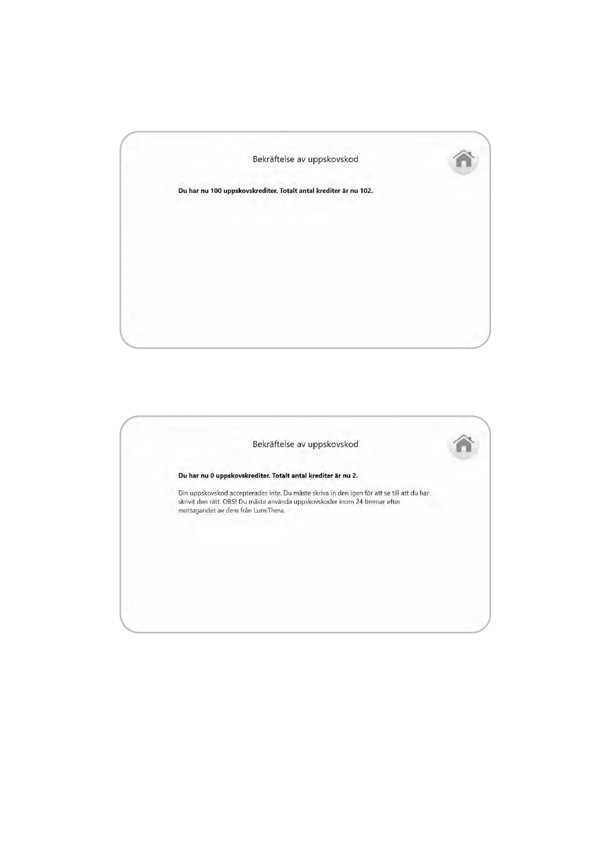 Om respitperiodkoden accepterades visas en bekräelseskärm med totalt antal tillgängliga
