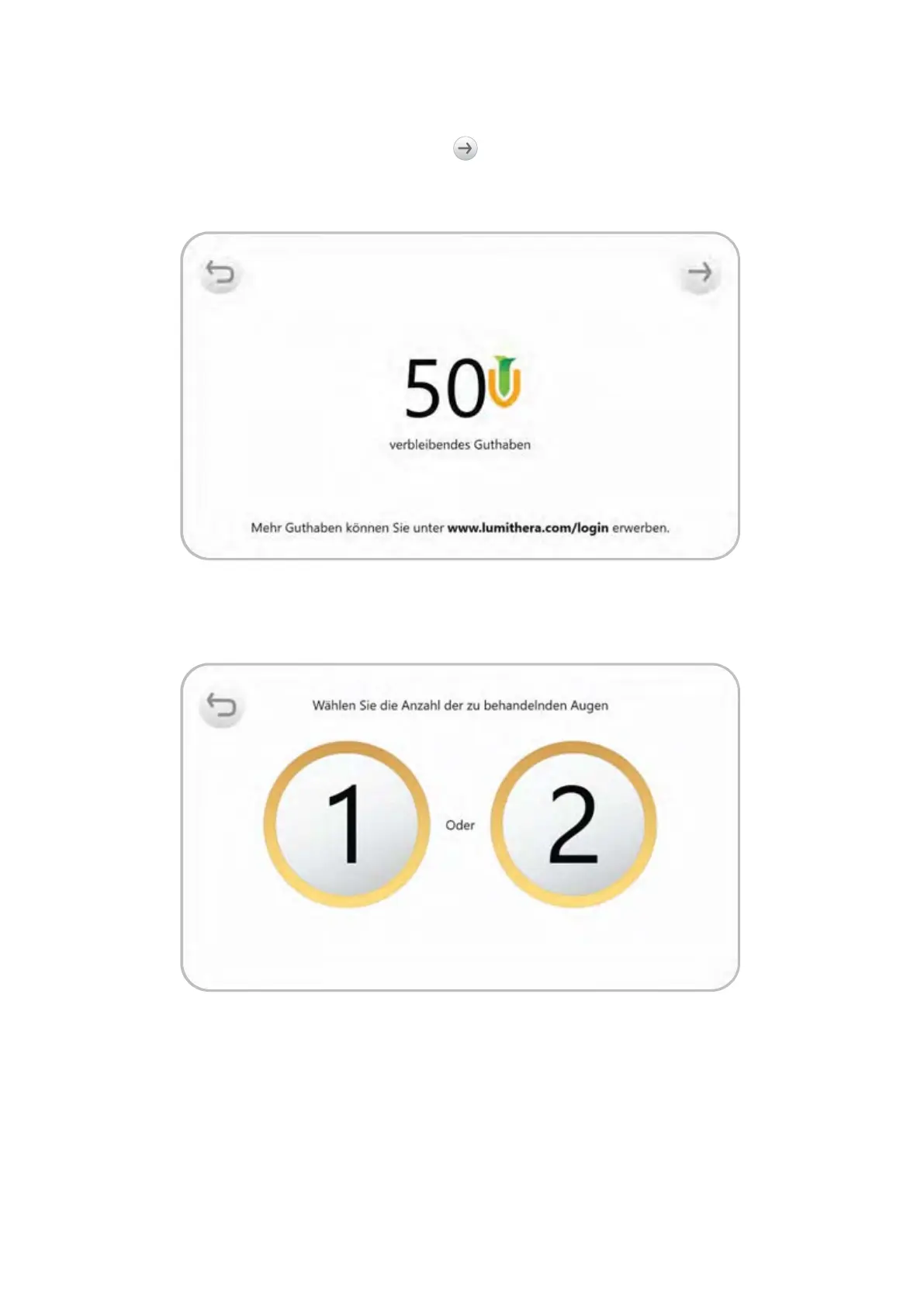 Auf dem nächsten Bildschirm wird die Anzahl des verbleibenden Valeda-Behandlungsguthabens