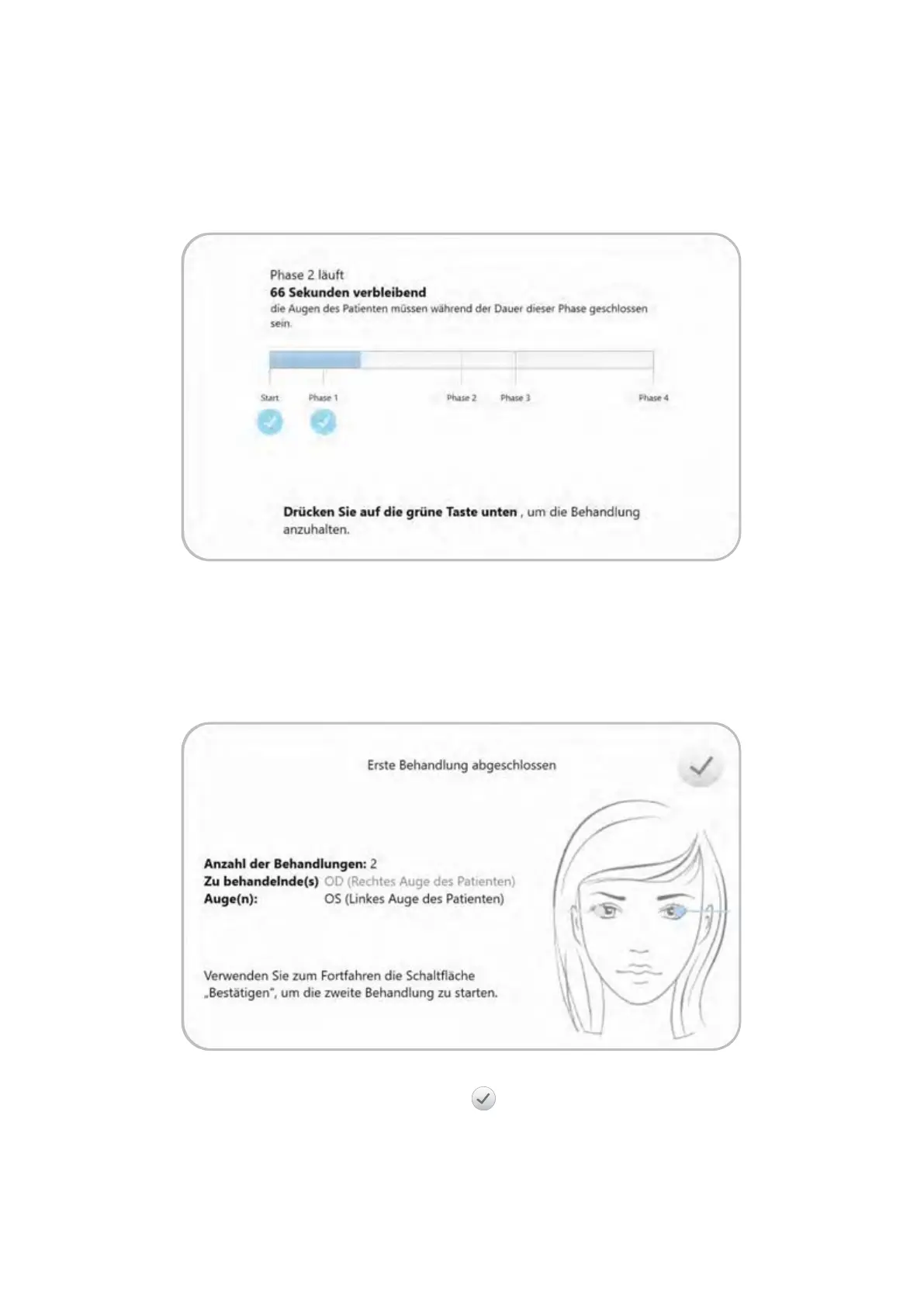Wenn das zweite Auge des Patienten behandelt werden soll, zeigt das System nach Abschluss der