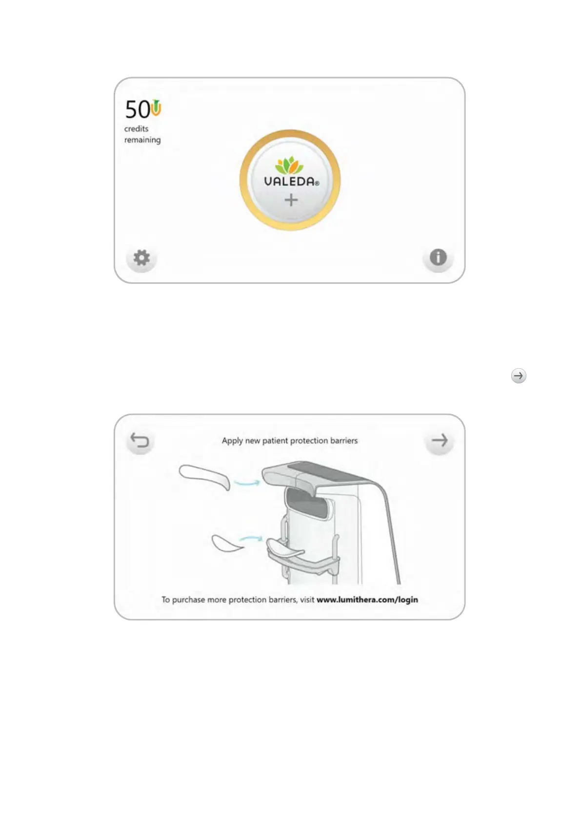 Apply the disposable protective barriers to the chin and forehead rest and tap the “Continue”
