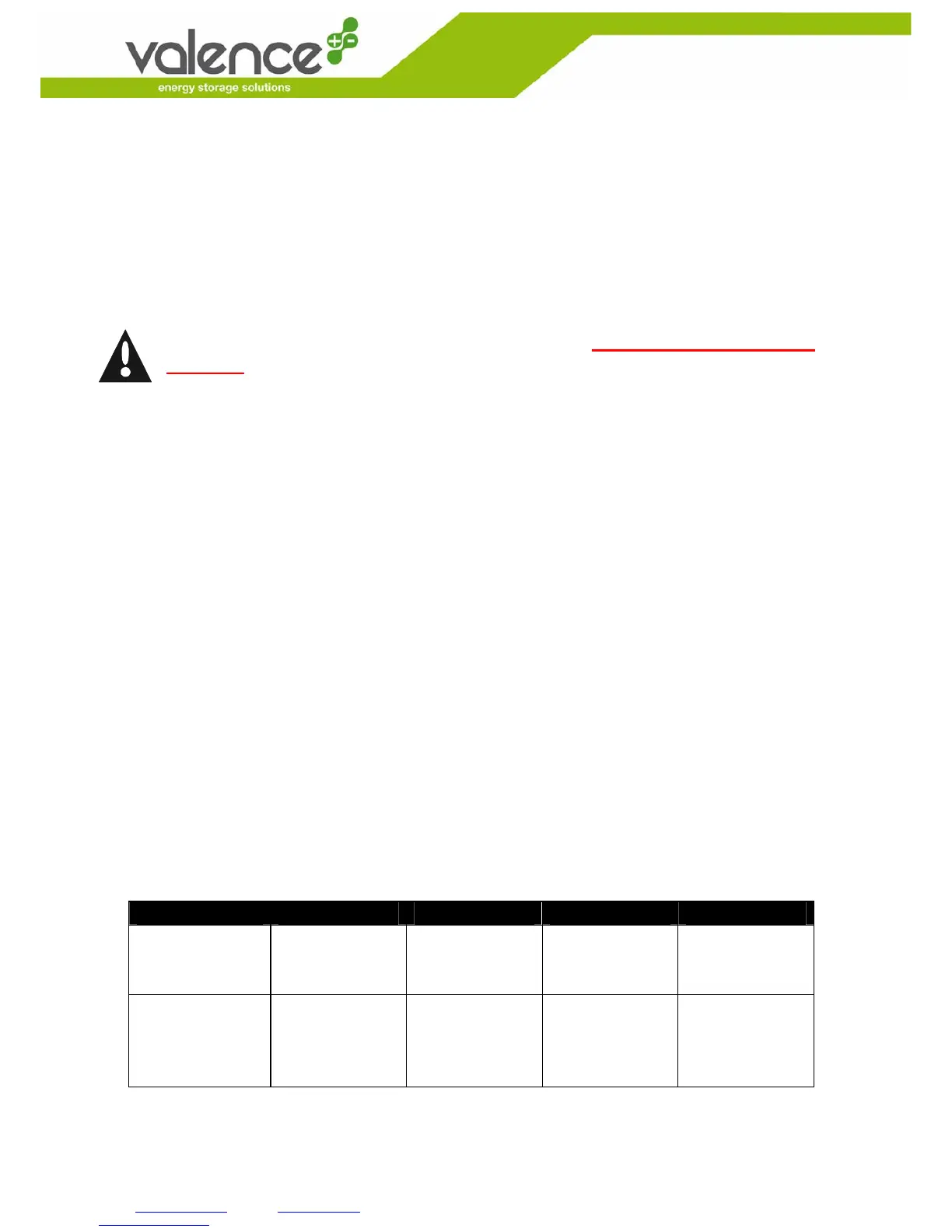 NOT proceed any further and contact Valence Technology immediately for guidance and