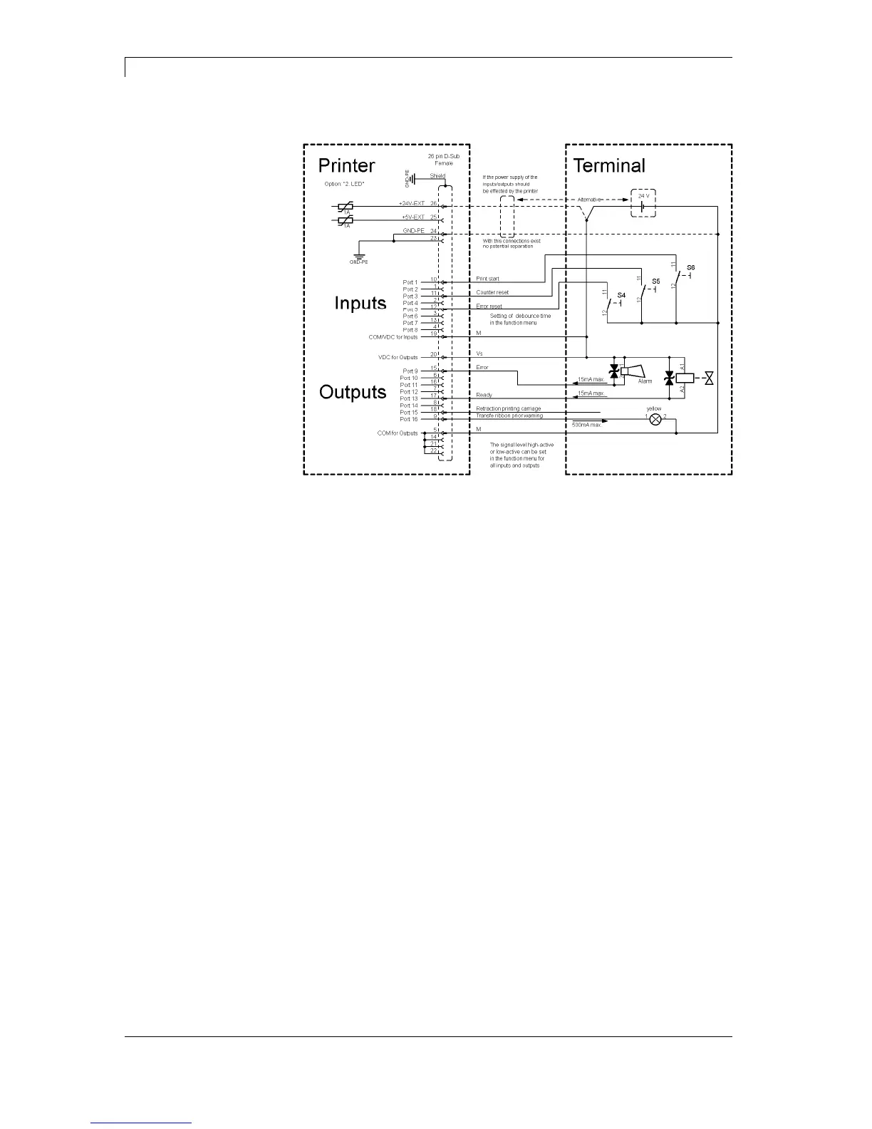 If one of the printer’s internal voltages '+5 VDC EXT' or '+24 VDC