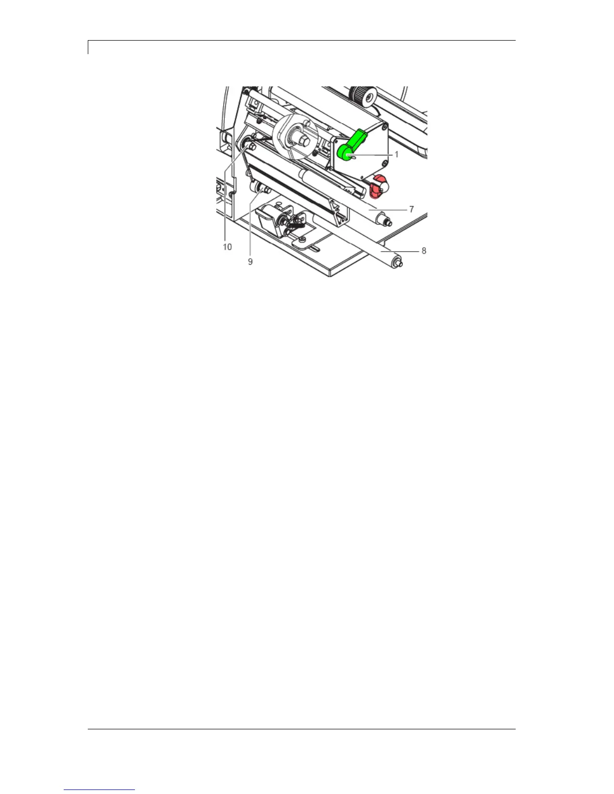 1. Pull print roller (7) and rewind assist roller (8) from the shafts (9,