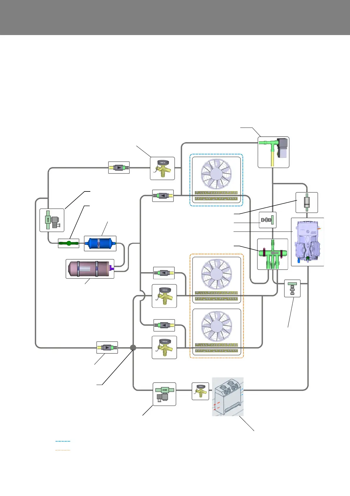 Fig. 412 Refrigerant circuit function schematic of the heat pump