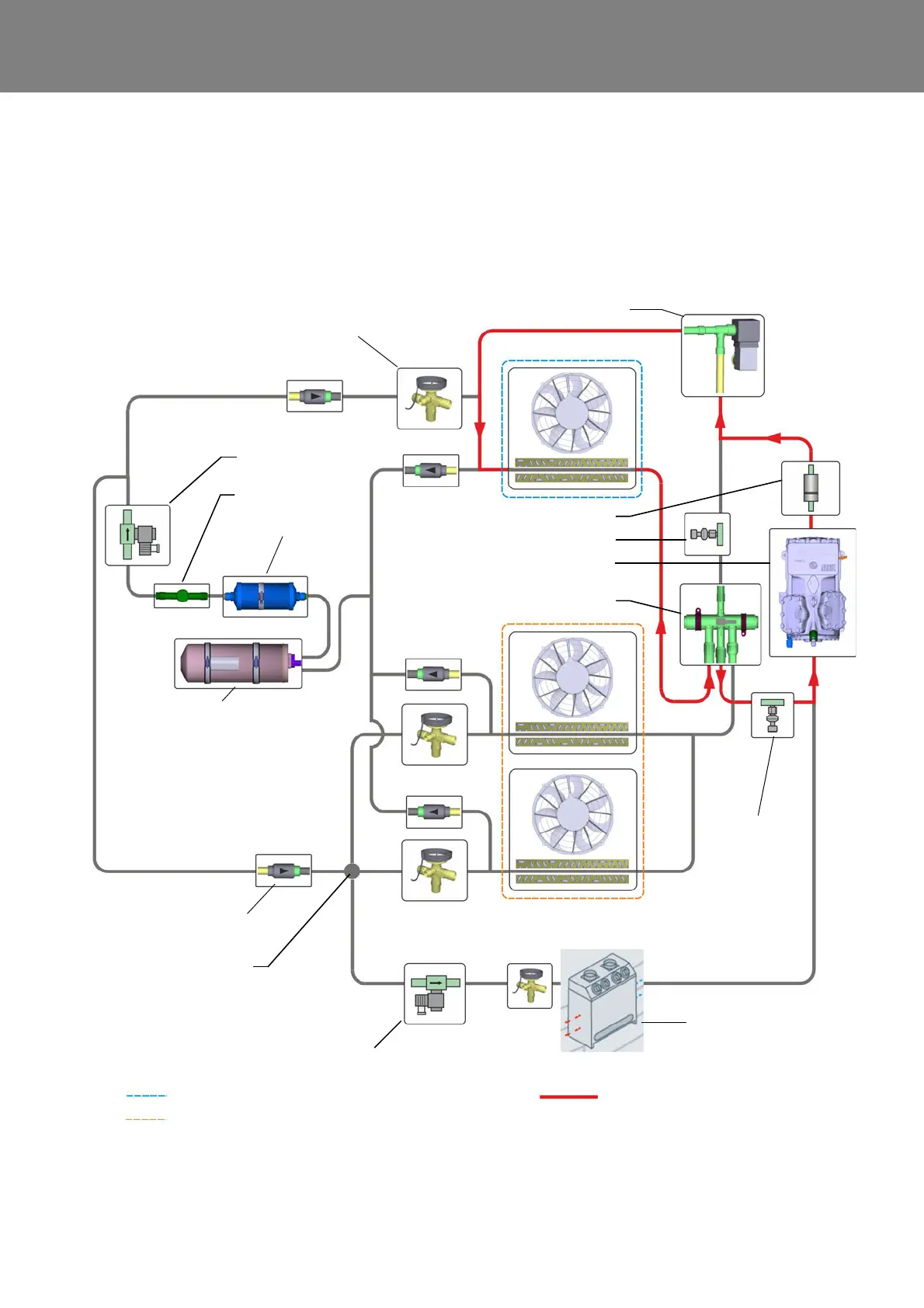 Abb. 417 Refrigerant circuit function schematic of the heat pump with hot gas de-icing (11123865_)