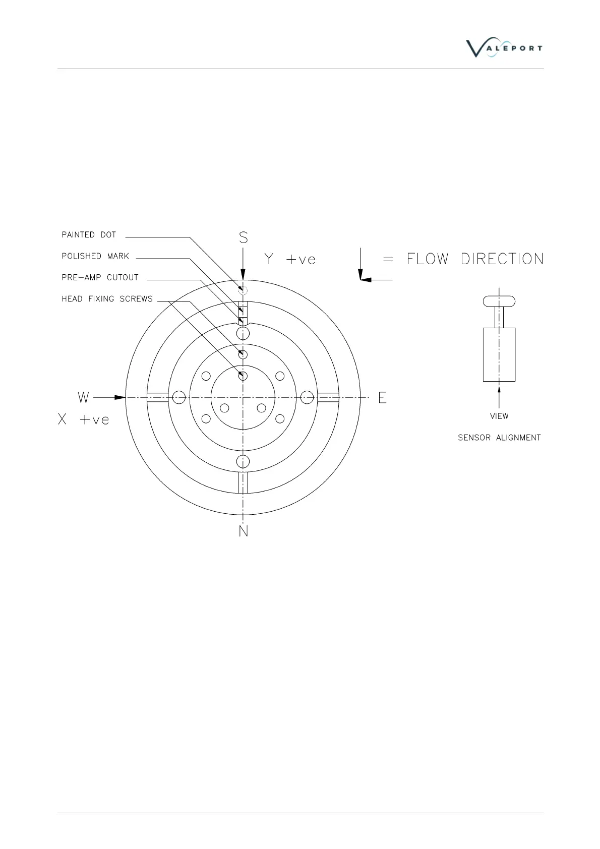 a flat surface on the Titanium sensor end cap, indicating that flow from that direction is Y +ve. The