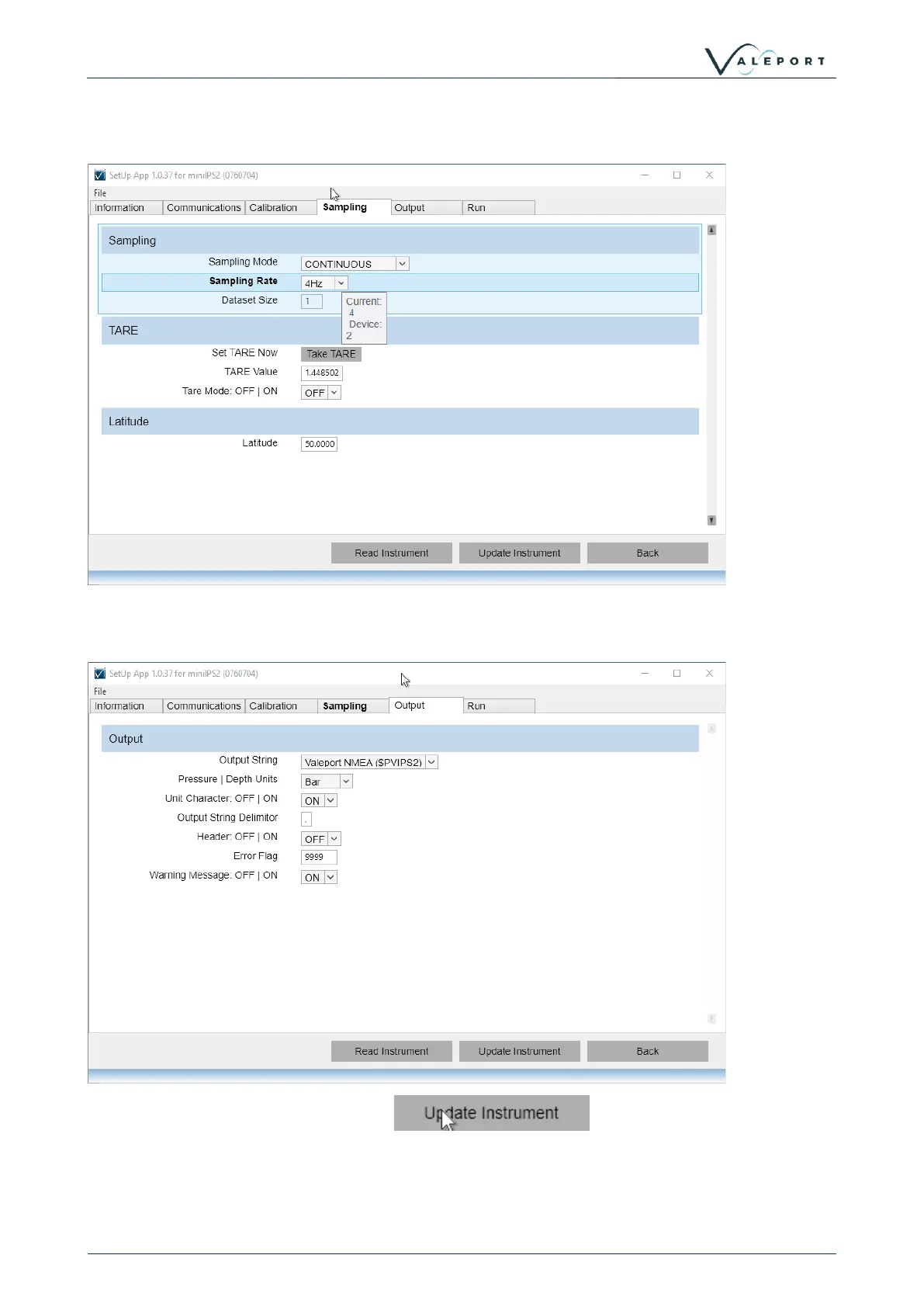 Setup Using Valeport Configure App