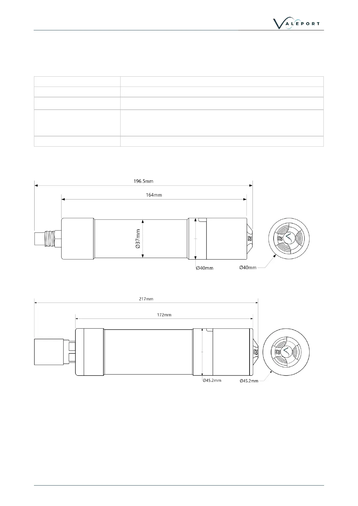 Valeport miniIPS2 - 3 Physical Characteristics; Materials; Dimensions - Miniips 2; Dimensions - Miniips 2 E