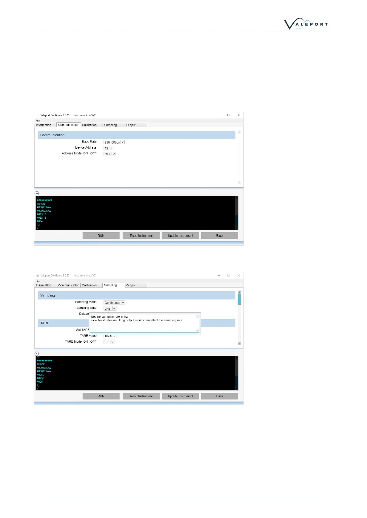 The Terminal window can also be used to send specific # commands to the instrument should that