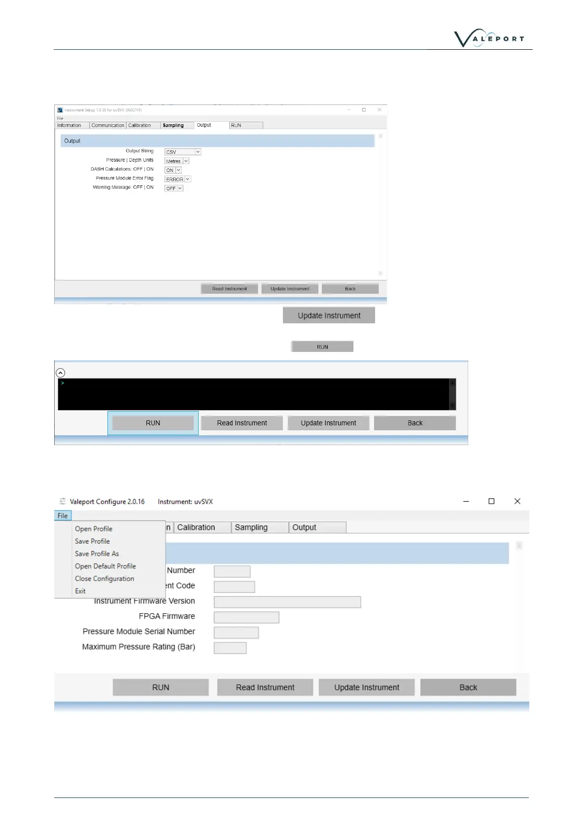 To set the instrument into a Run Mode select the button at the bottom of the screen.