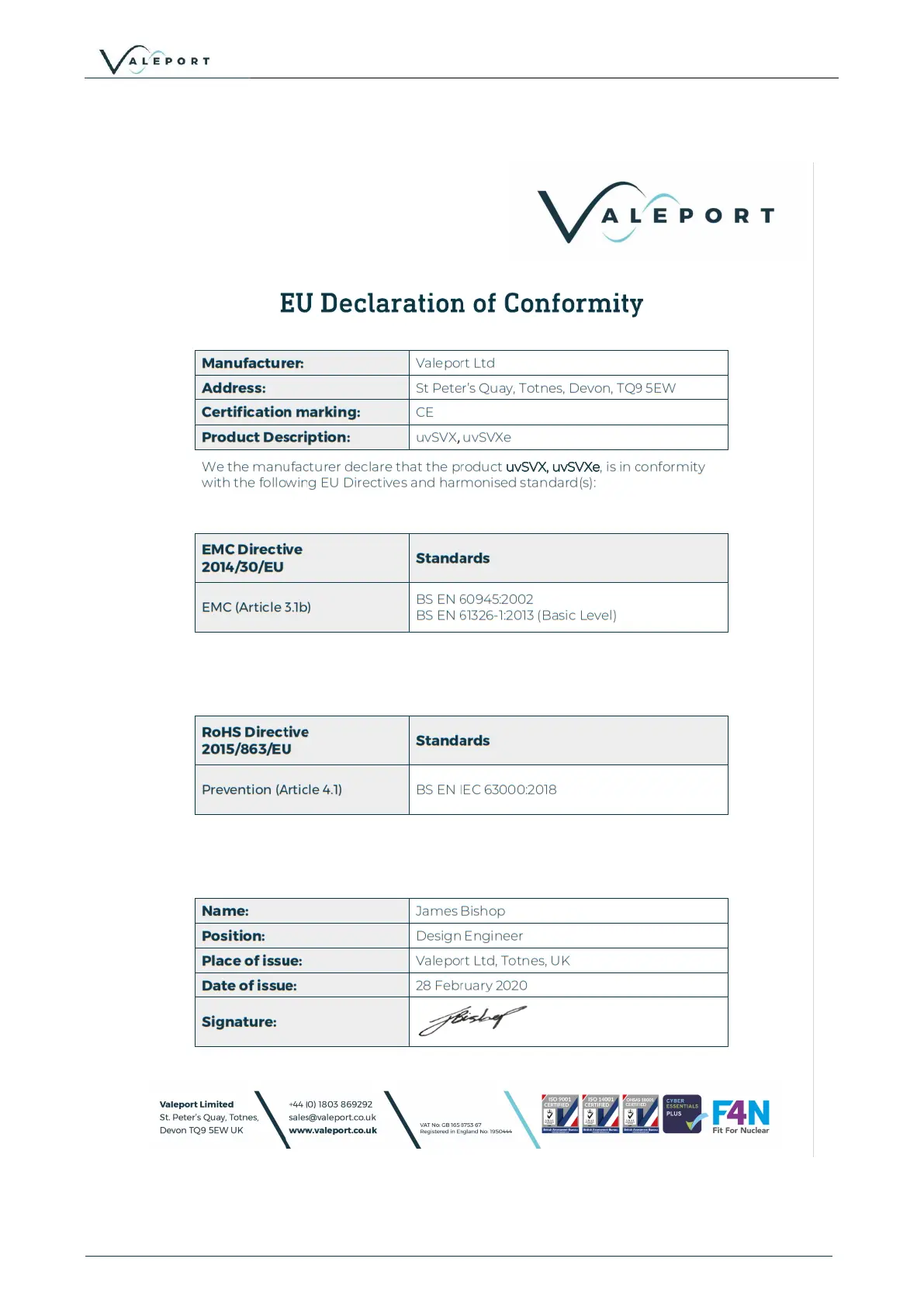 Valeport uvSVX - EU Declaration of Conformity