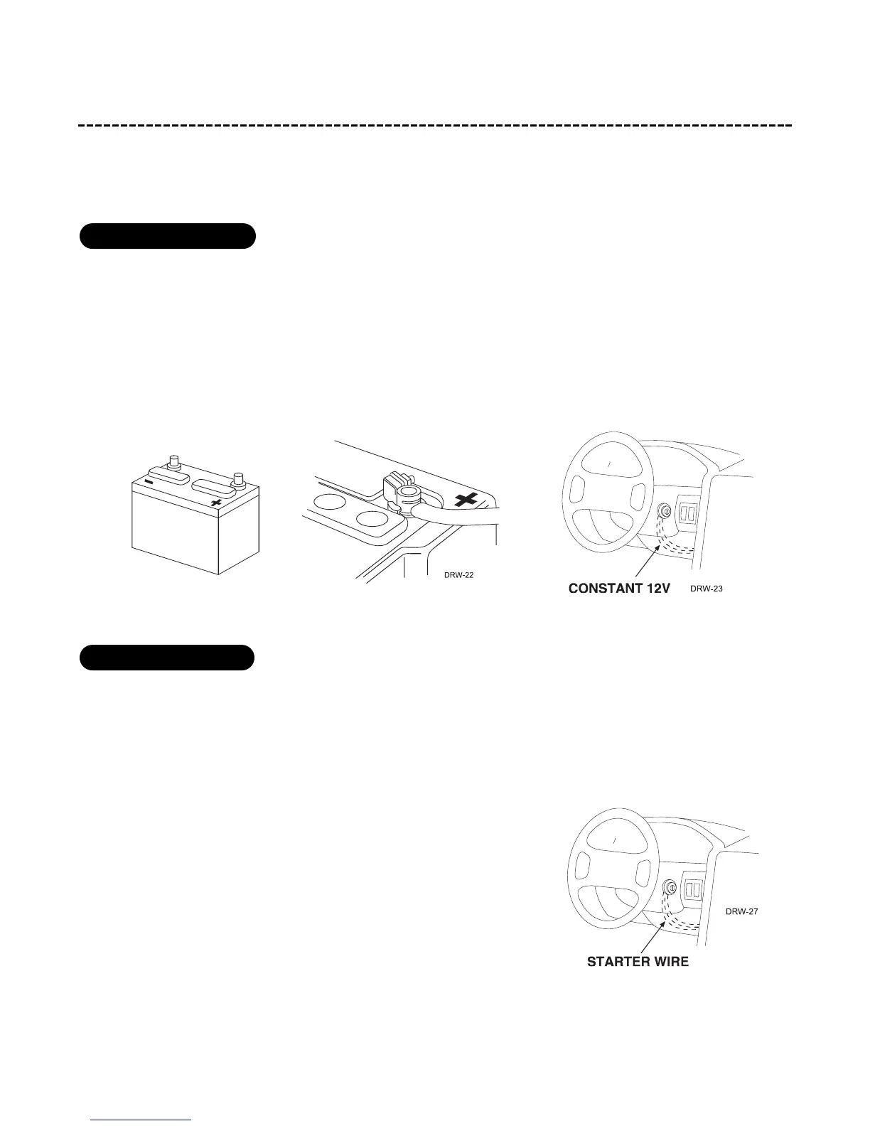 We recommend two possible sources for 12V constant: The (+) terminal of the battery, or the constant 12V supply