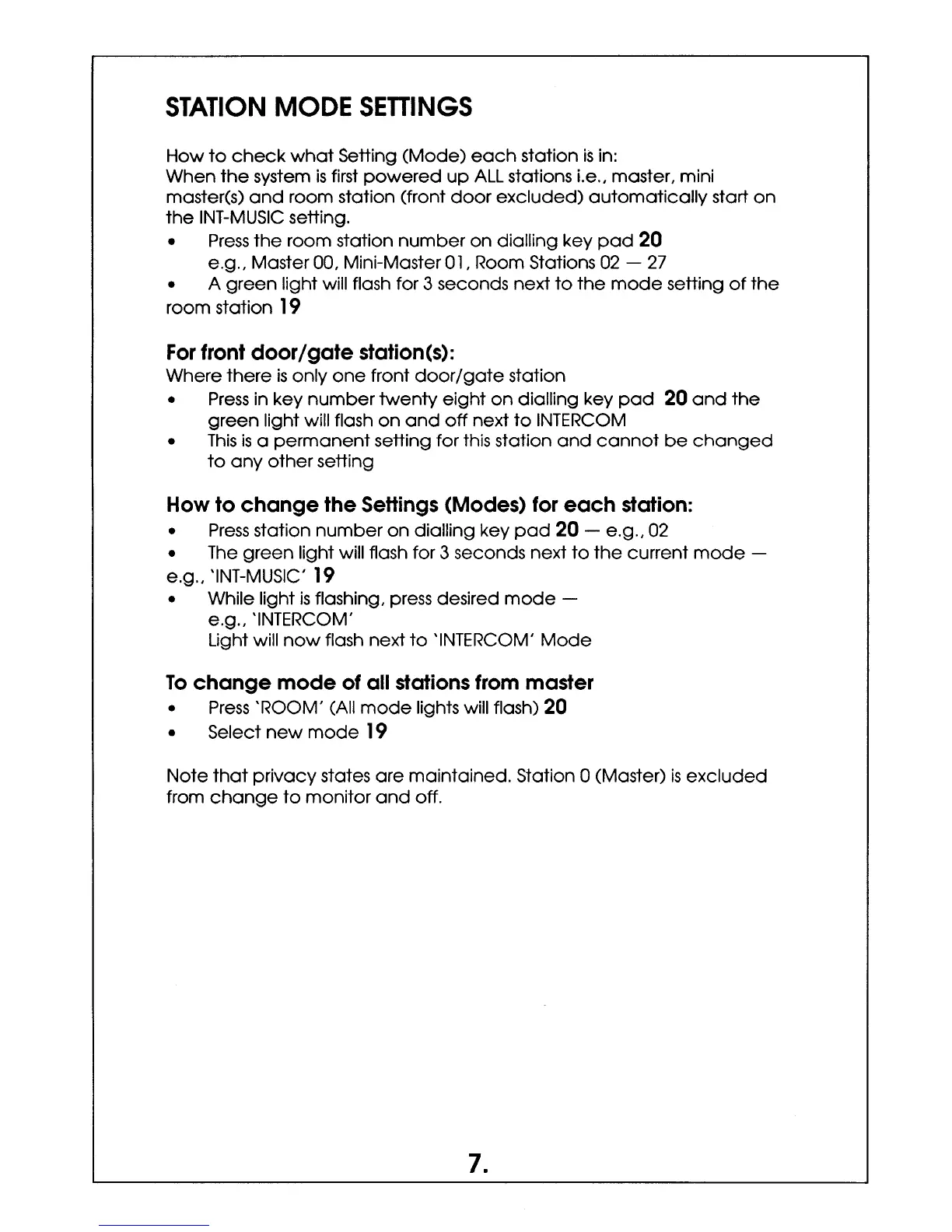 Valet VM2000 - Station Mode Settings Management; Checking Current Station Modes; Changing Individual Station Modes; Changing All Station Modes