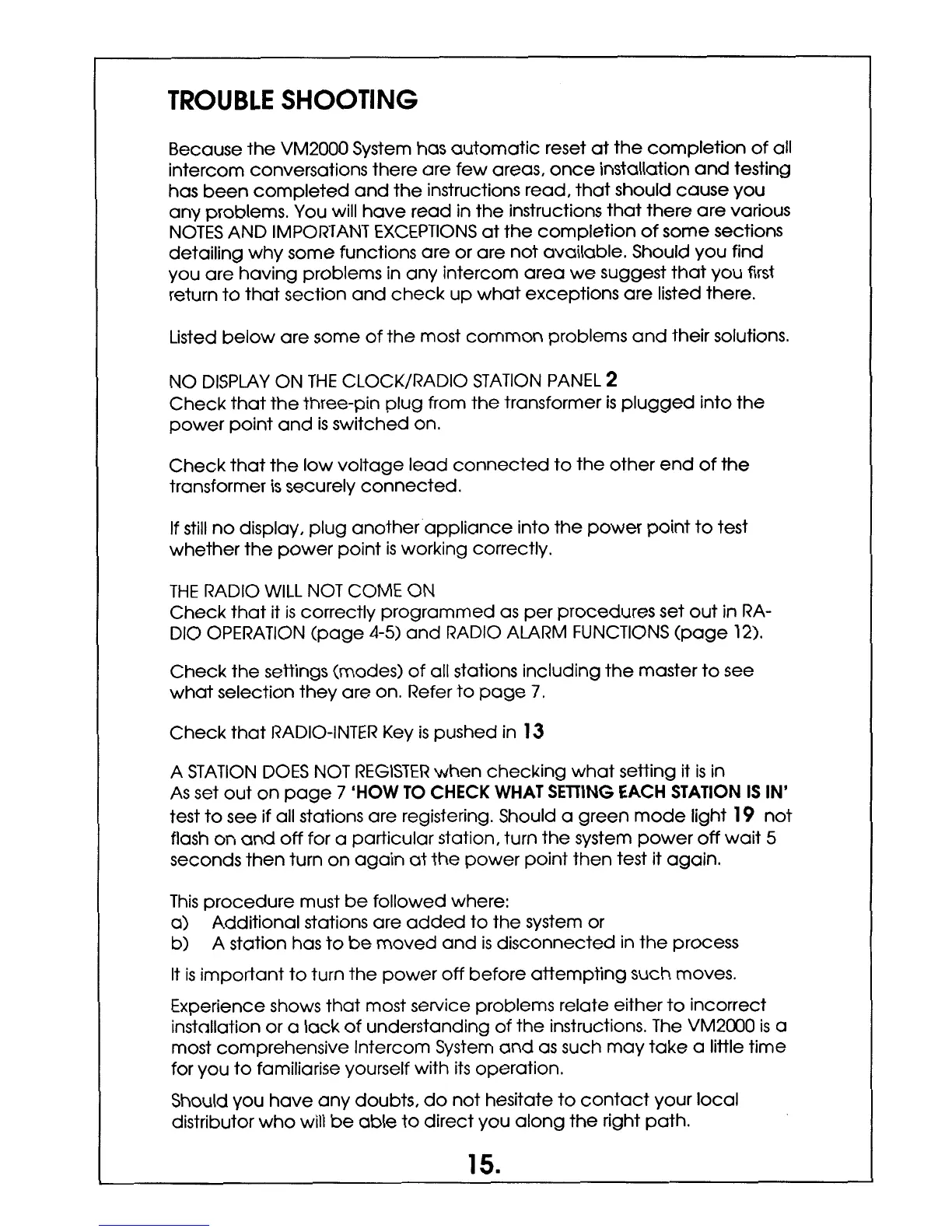 Valet VM2000 - Troubleshooting Common Issues; Resolving No Display Errors; Resolving Radio Not Operating Issues; Resolving Station Registration Problems
