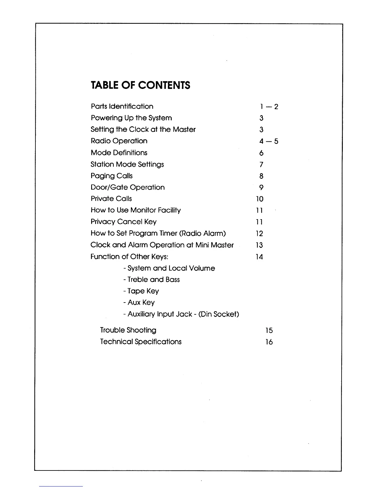 Valet VM2000 - Table of Contents