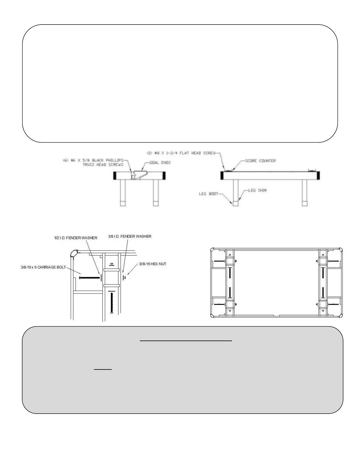 6. Attach the score beads on each end of the table as shown, using (2) #8 x 1½” screws.