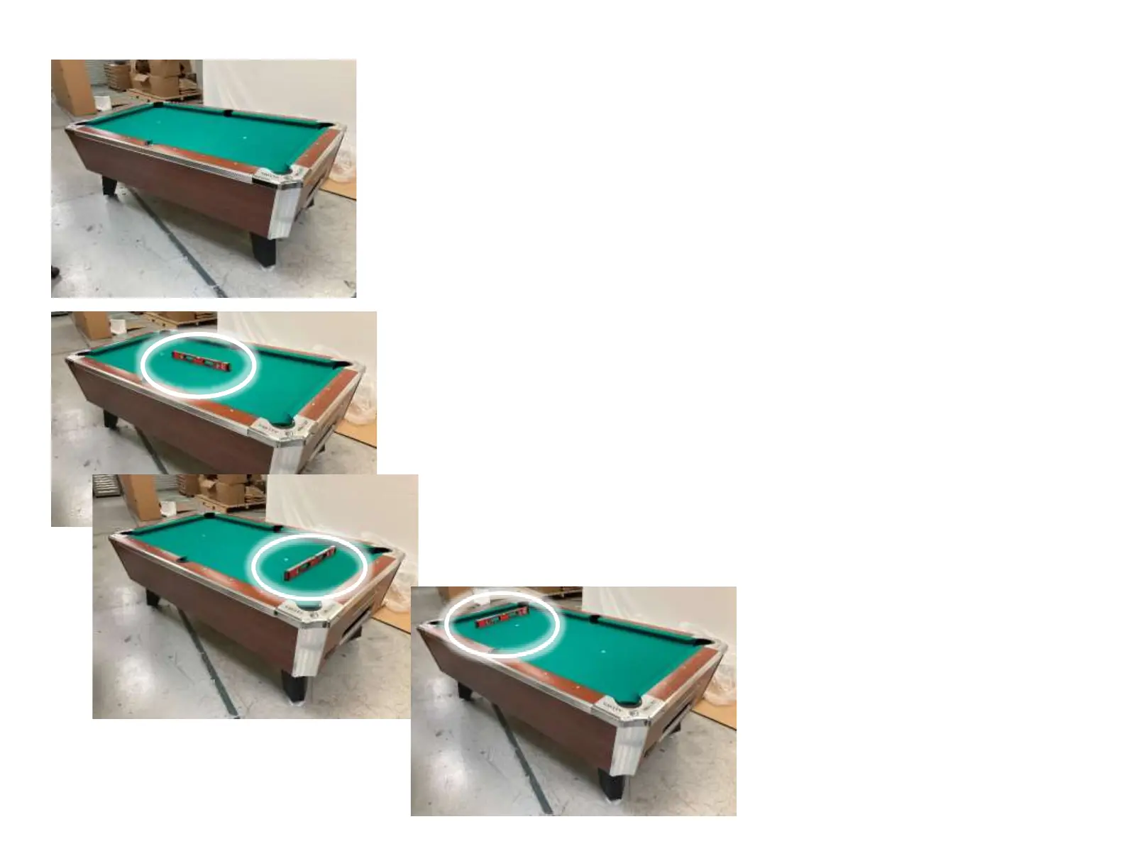 11. To level the table place the level in various locations on the slate and