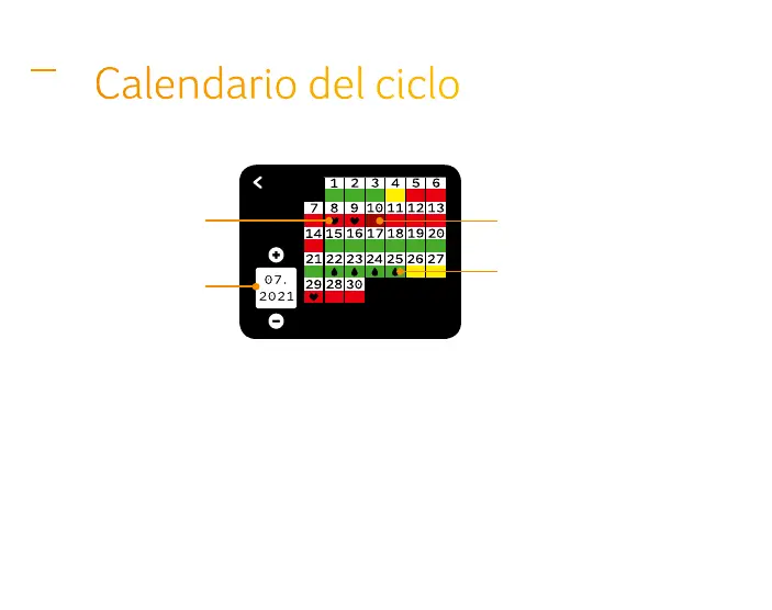 El calendario de ciclos te muestra los estados de fertilidad de tus ciclos