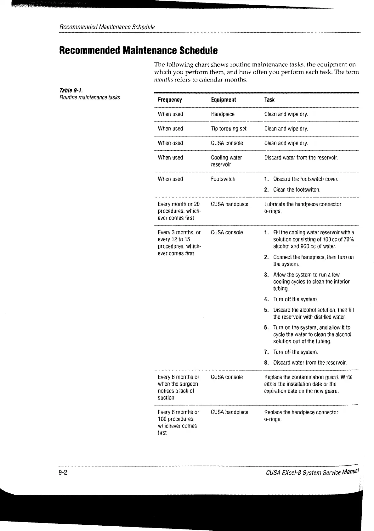 Valleylab CUSA EXcel-8 - Recommended Maintenance Schedule