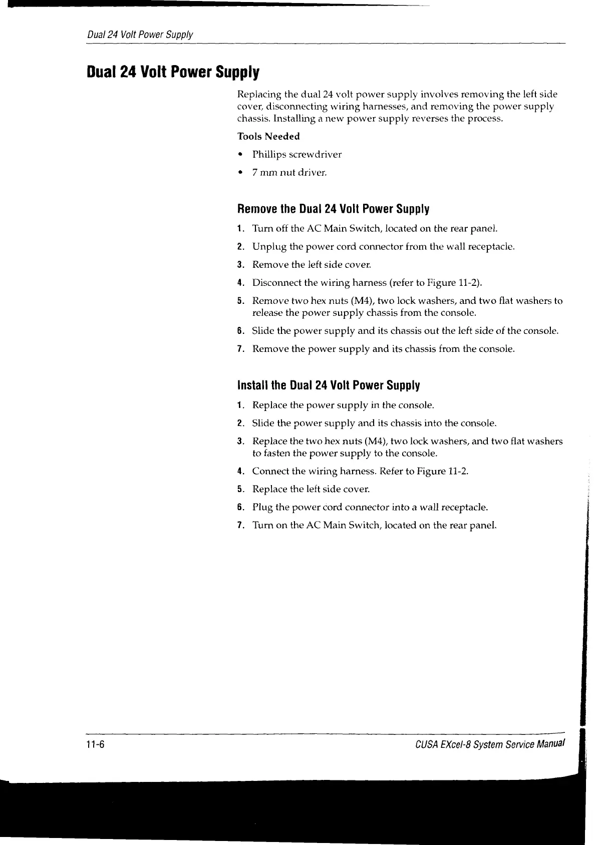 Valleylab CUSA EXcel-8 - Dual 24 Volt Power Supply; Install the Dual 24 Volt Power Supply; Remove the Dual 24 Volt Power Supply