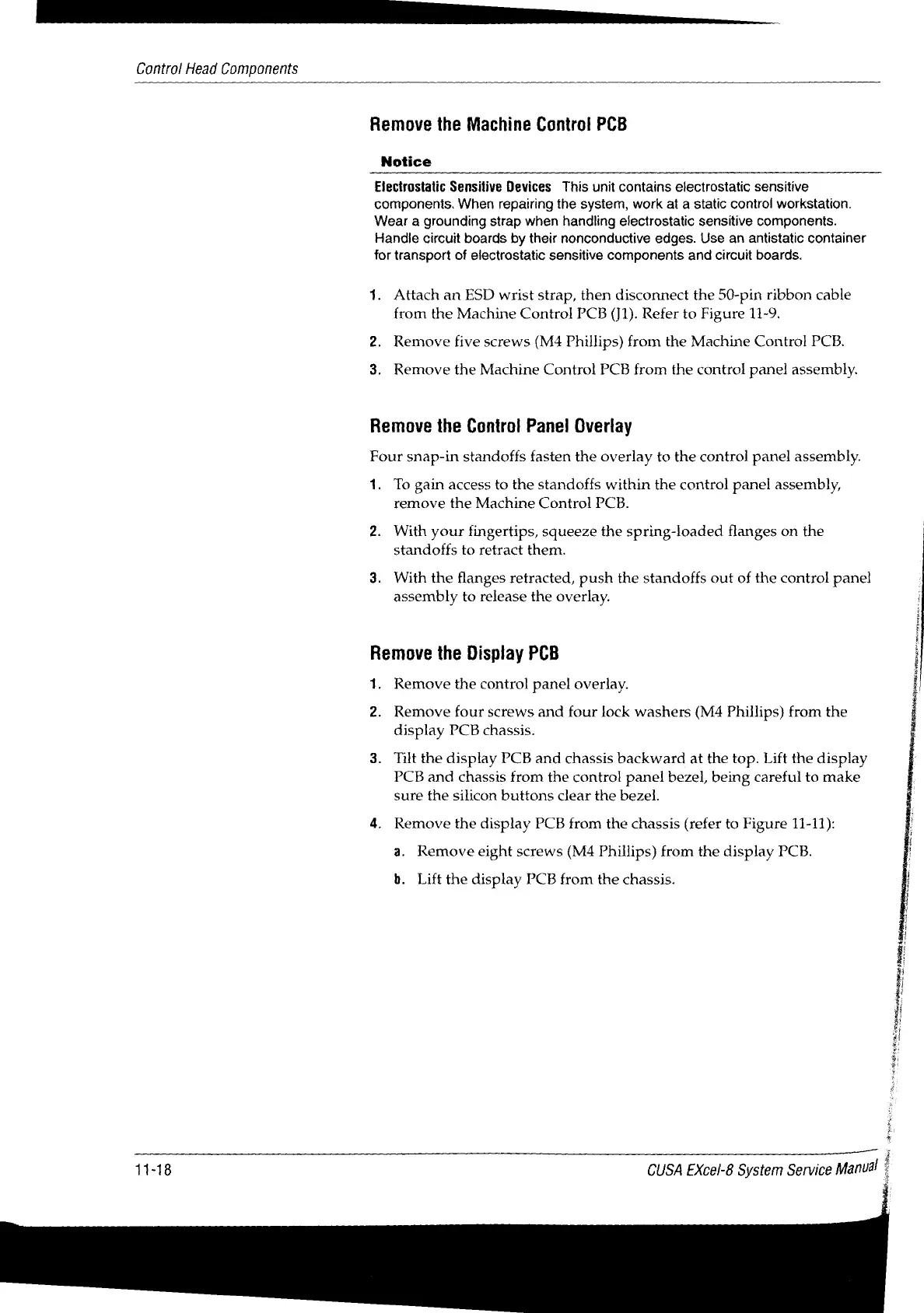 Valleylab CUSA EXcel-8 - Remove the Control Panel Overlay; Remove the Display PCB; Remove the Machine Control PCB