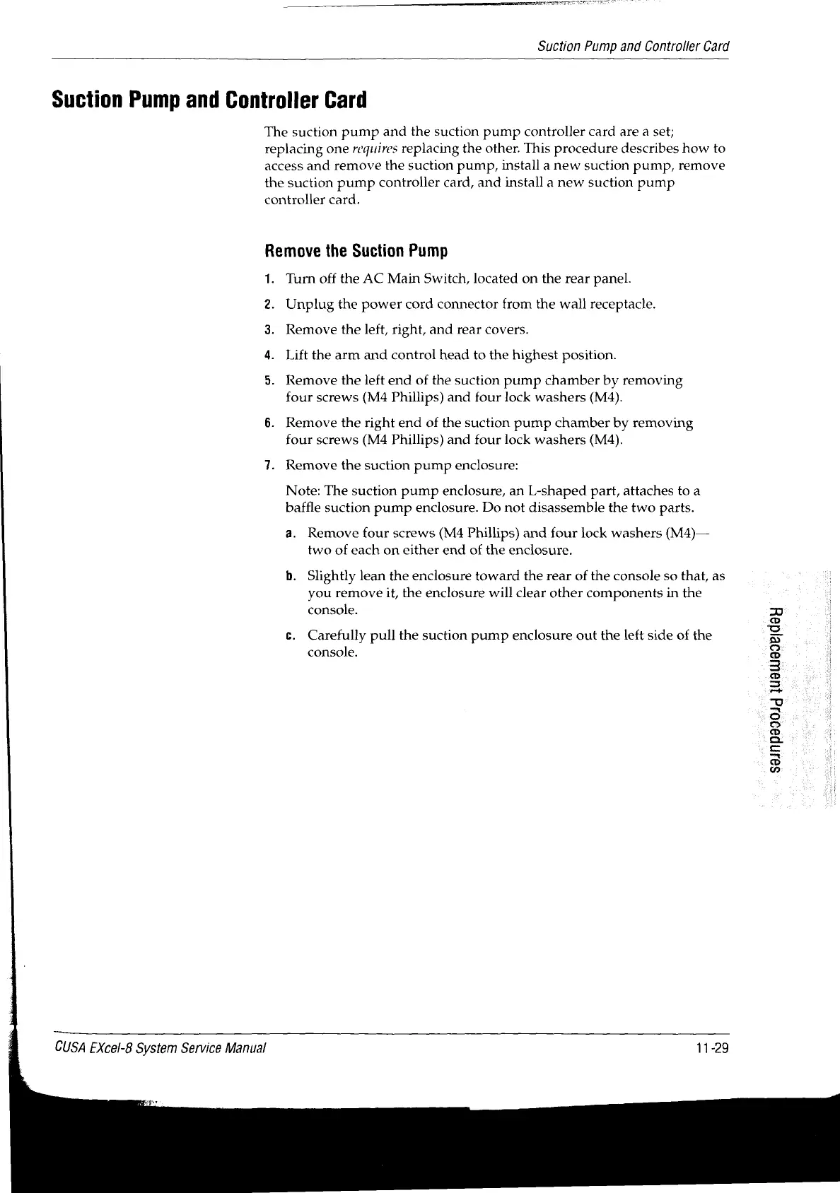 Valleylab CUSA EXcel-8 - Remove the Suction Pump; Suction Pump and Controller Card