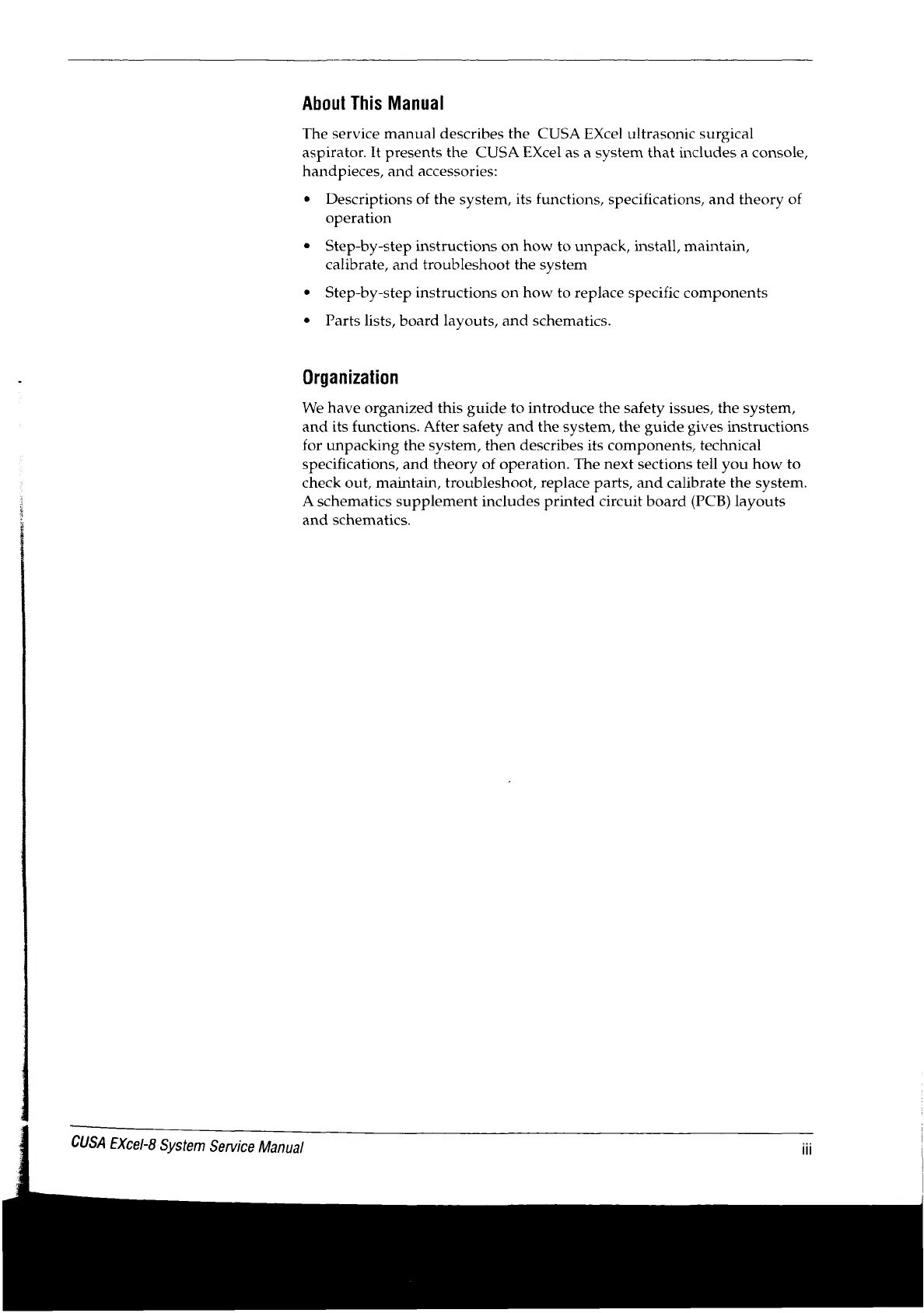 Valleylab CUSA EXcel-8 - About this Manual; Organization