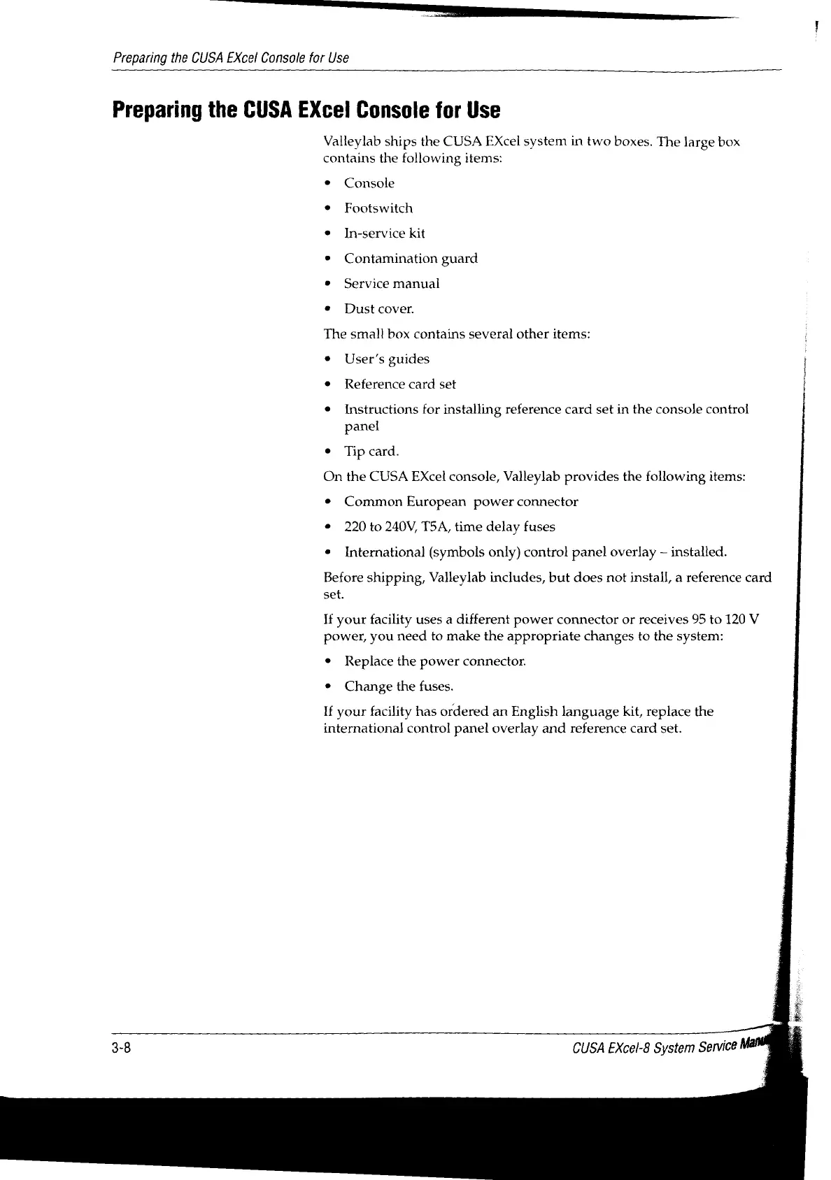 Valleylab CUSA EXcel-8 - Preparing the CUSA Excel Console for Use