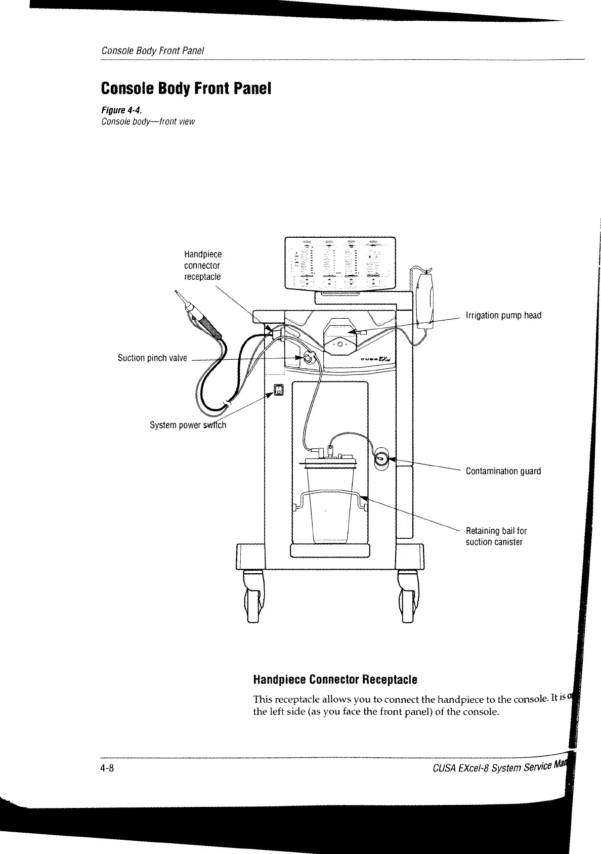 Valleylab CUSA EXcel-8 - Console Body Front Panel; Handpiece Connector Receptacle
