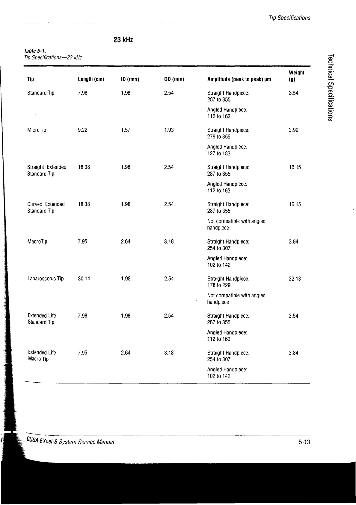 Valleylab CUSA EXcel-8 - 23 Khz; Tip Specifications