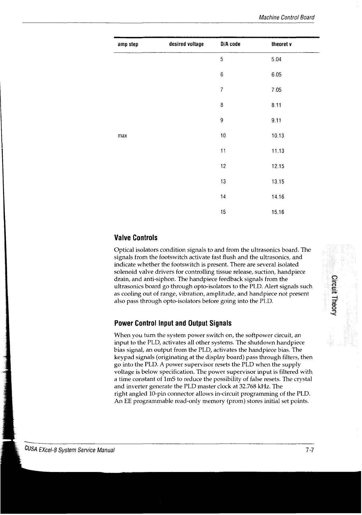 Valleylab CUSA EXcel-8 - Power Control Input and Output Signals; Valve Controls