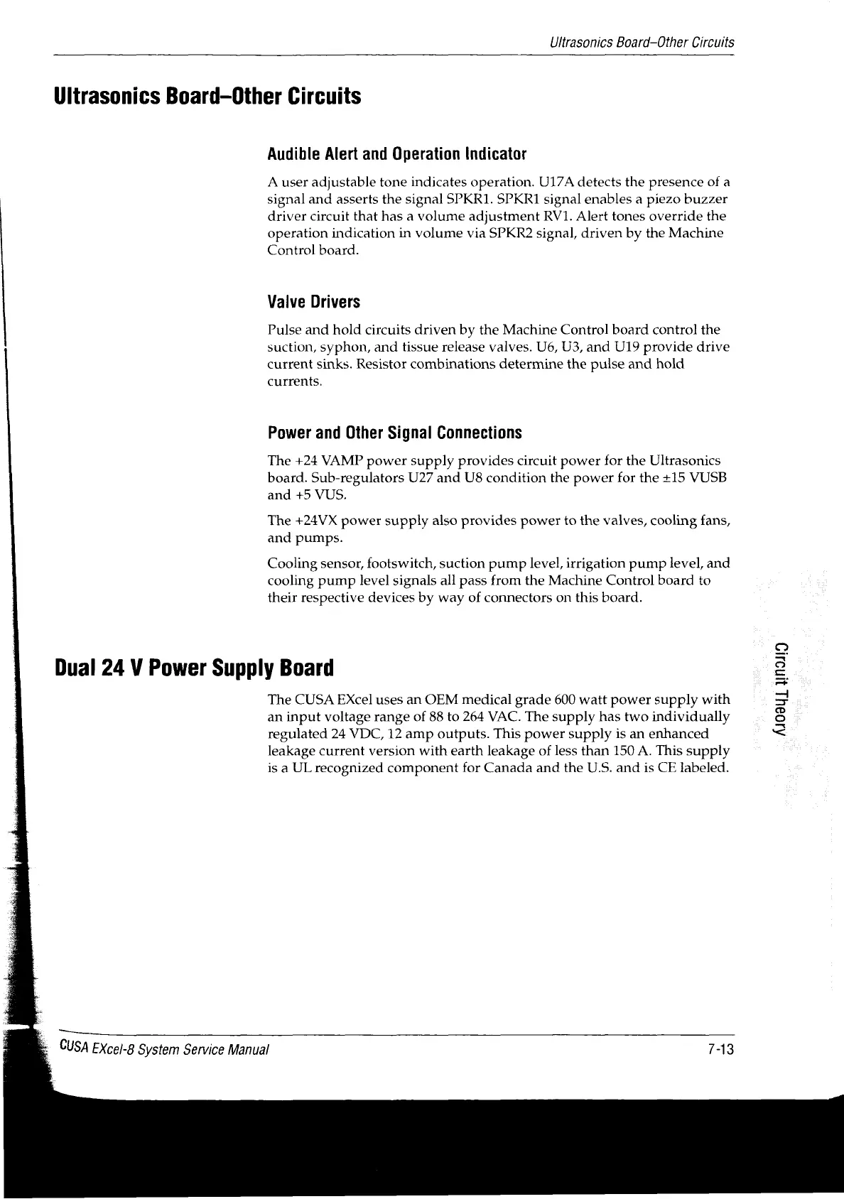 Valleylab CUSA EXcel-8 - Audible Alert and Operation Indicator; Dual 24 V Power Supply Board; Power and Other Signal Connections; Ultrasonics Board-Other Circuits