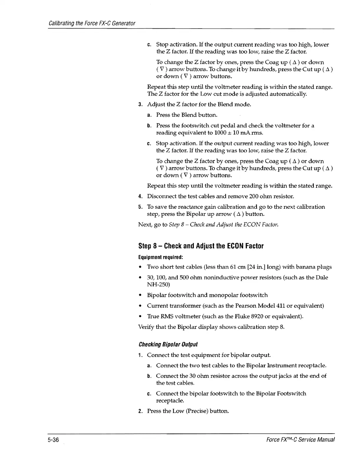 Valleylab Force FX-C - Check and Adjust the ECON Factor