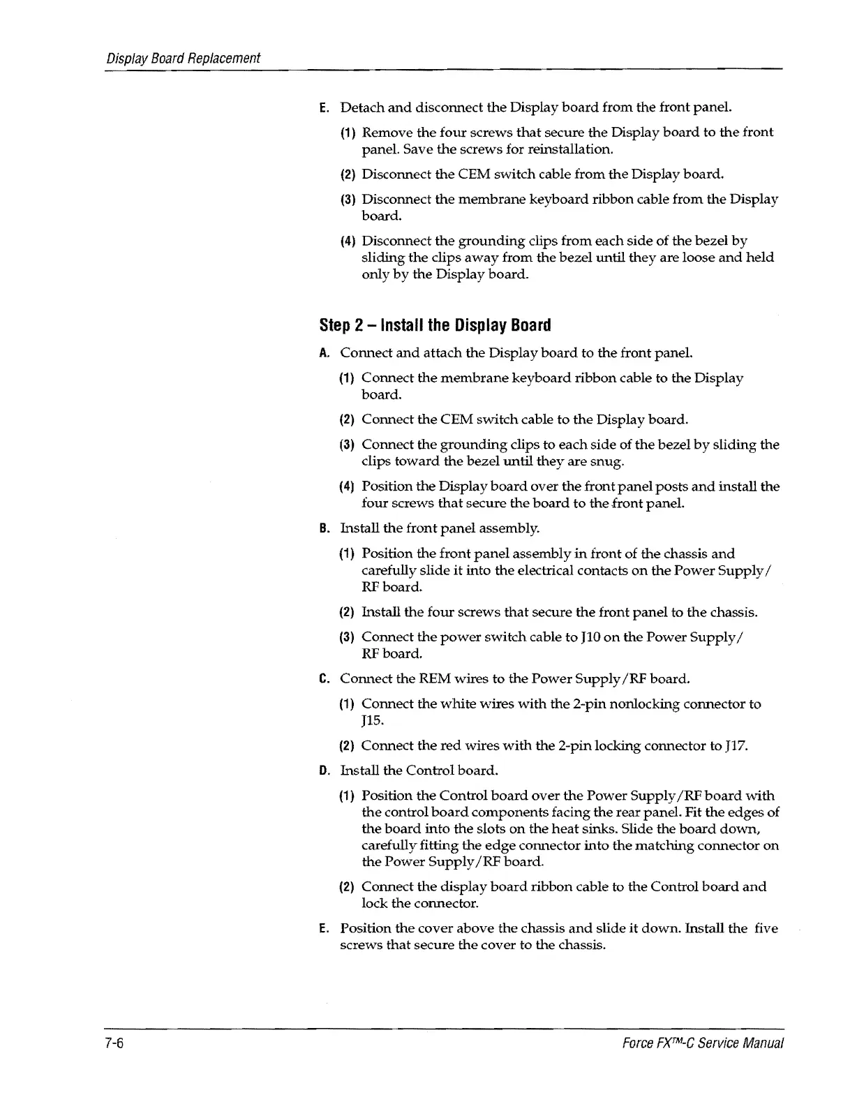 Valleylab Force FX-C - Install the Display Board