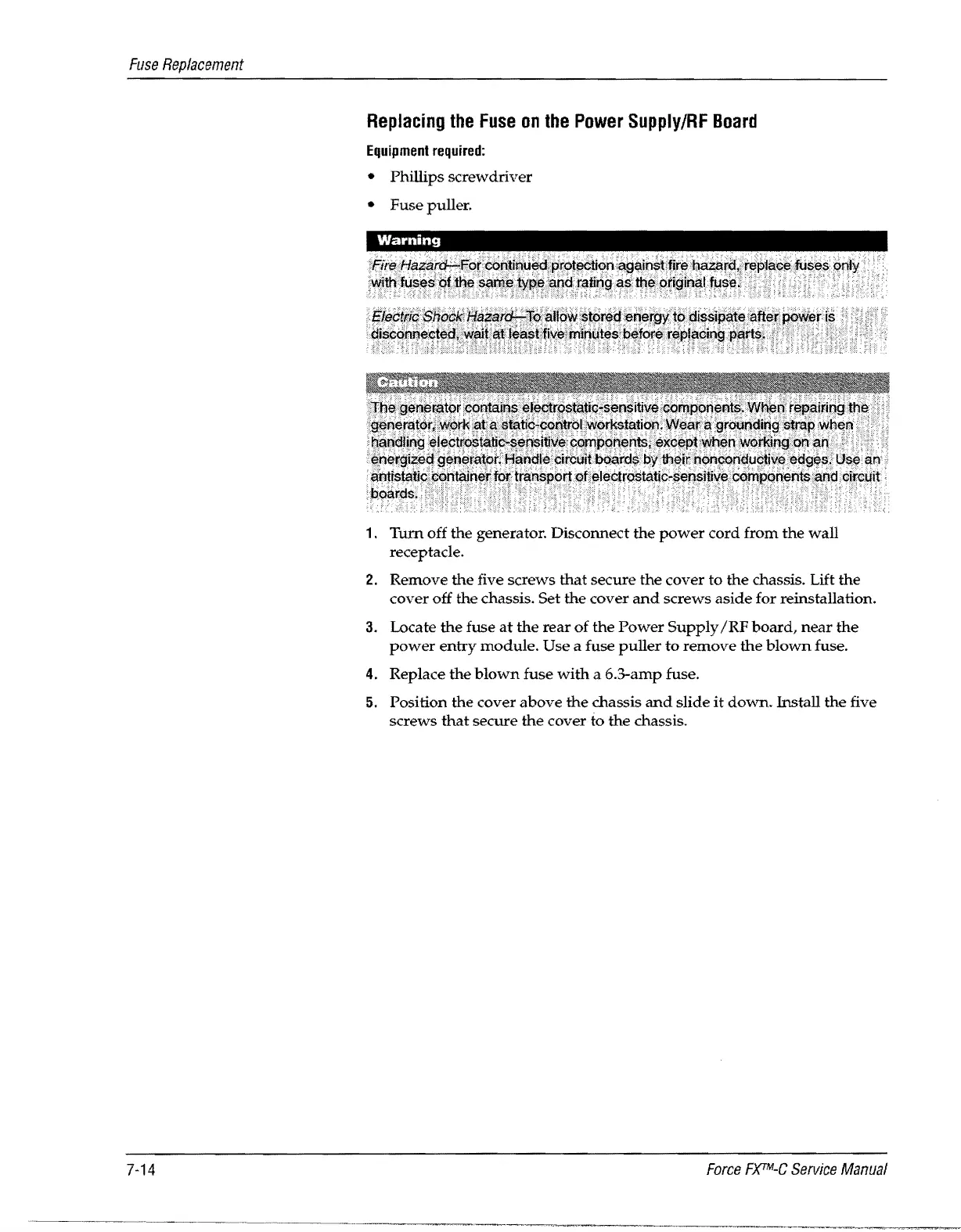 Valleylab Force FX-C - Replacing the Fuse on the Power Supply;Rf Board