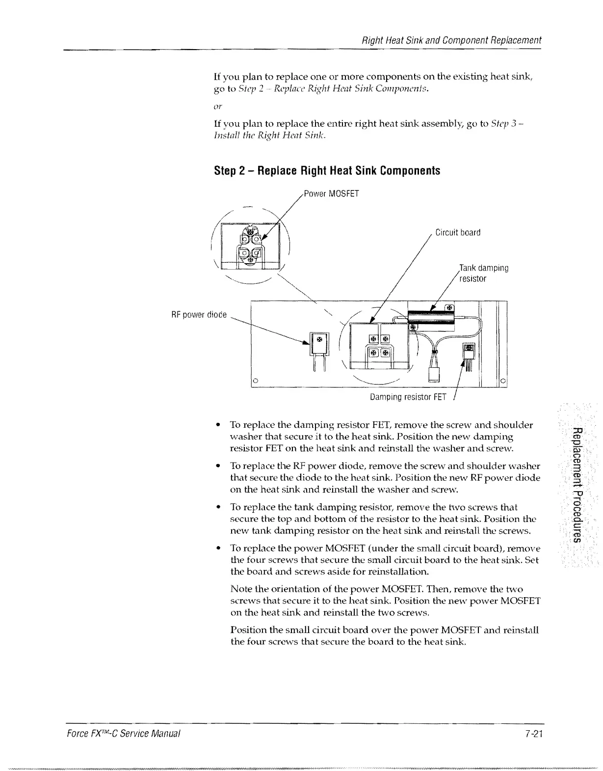 Valleylab Force FX-C - Replace Right Heat Sink Components; Install the Right Heat Sink 7·22