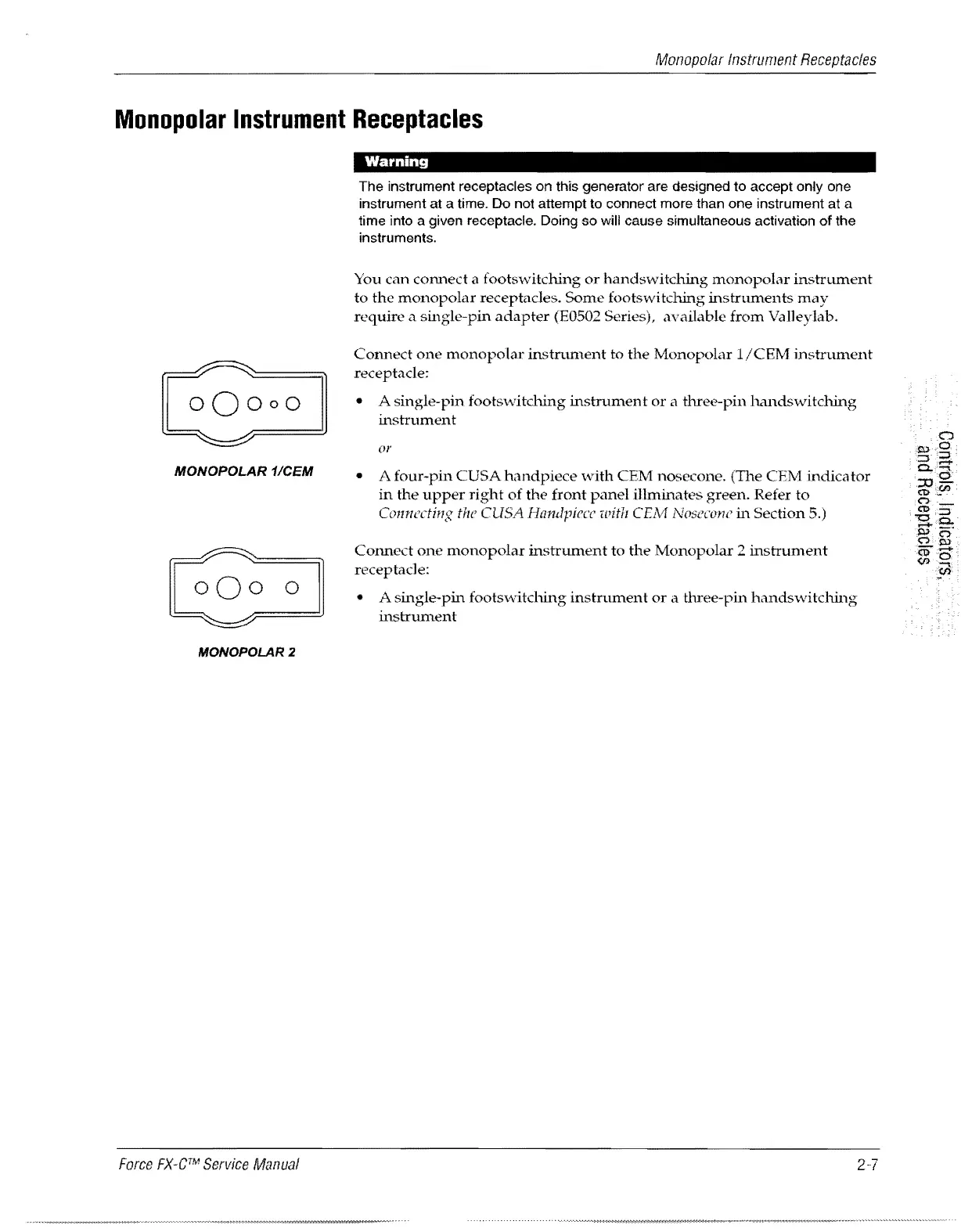 Valleylab Force FX-C - Monopolar Instrument Receptacles 2·7